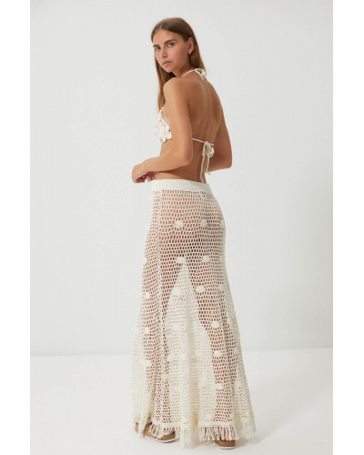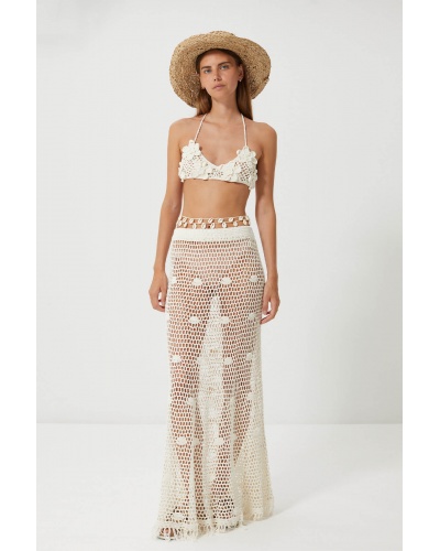 The Jepun mini top embodies the spirit of tropical bohemia with its delicately hand-crocheted floral motif. Each flower is crocheted in relief to create a textured 3D effect, bringing a sunny, romantic touch to your beach or festival looks.