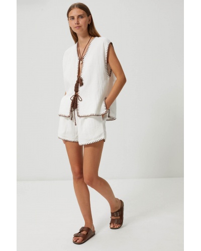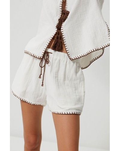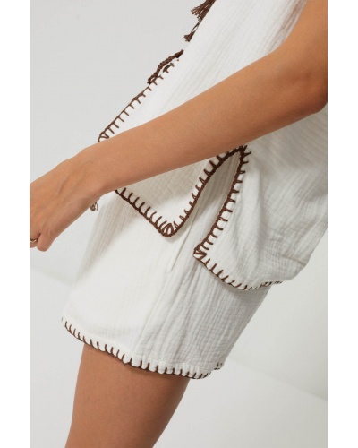 White shorts in cotton gauze and embroidery