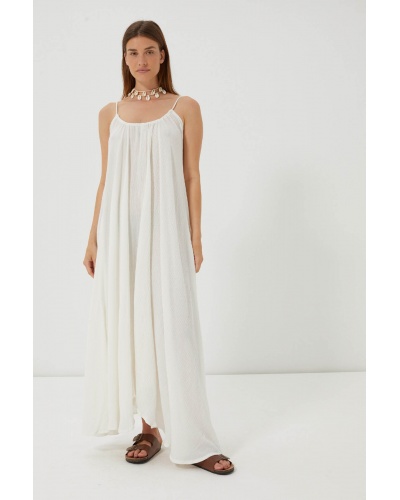 Light as a summer breeze, the Injia dress seduces with its loose, airy cut and textured fabric. Made from embossed cotton, it glides over the skin with softness and elegance.