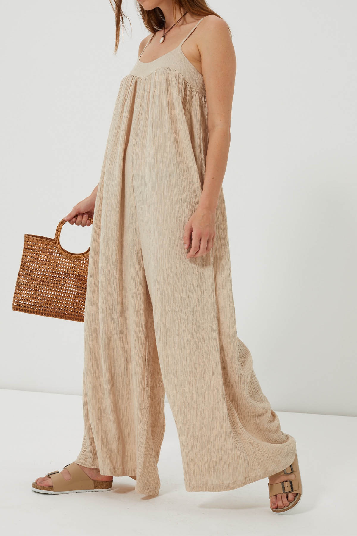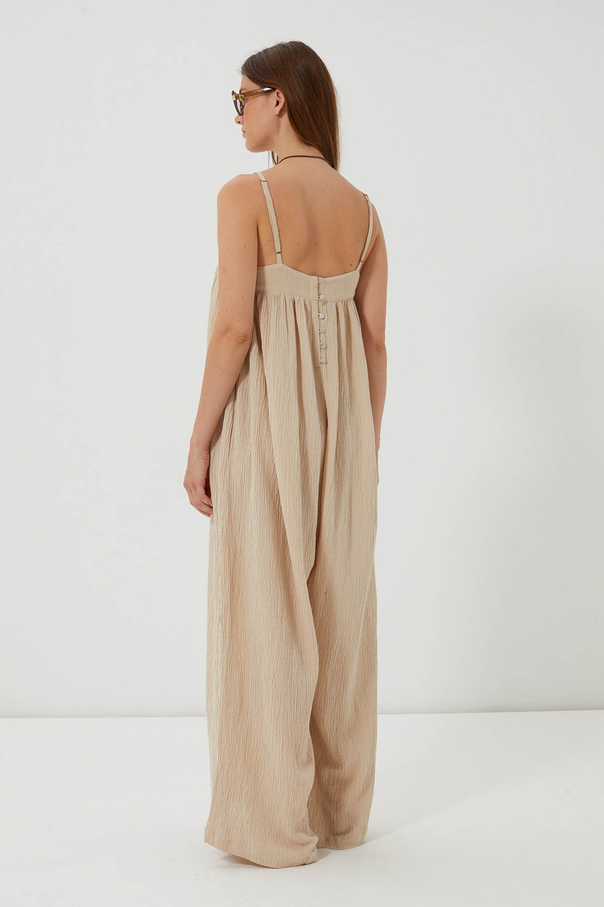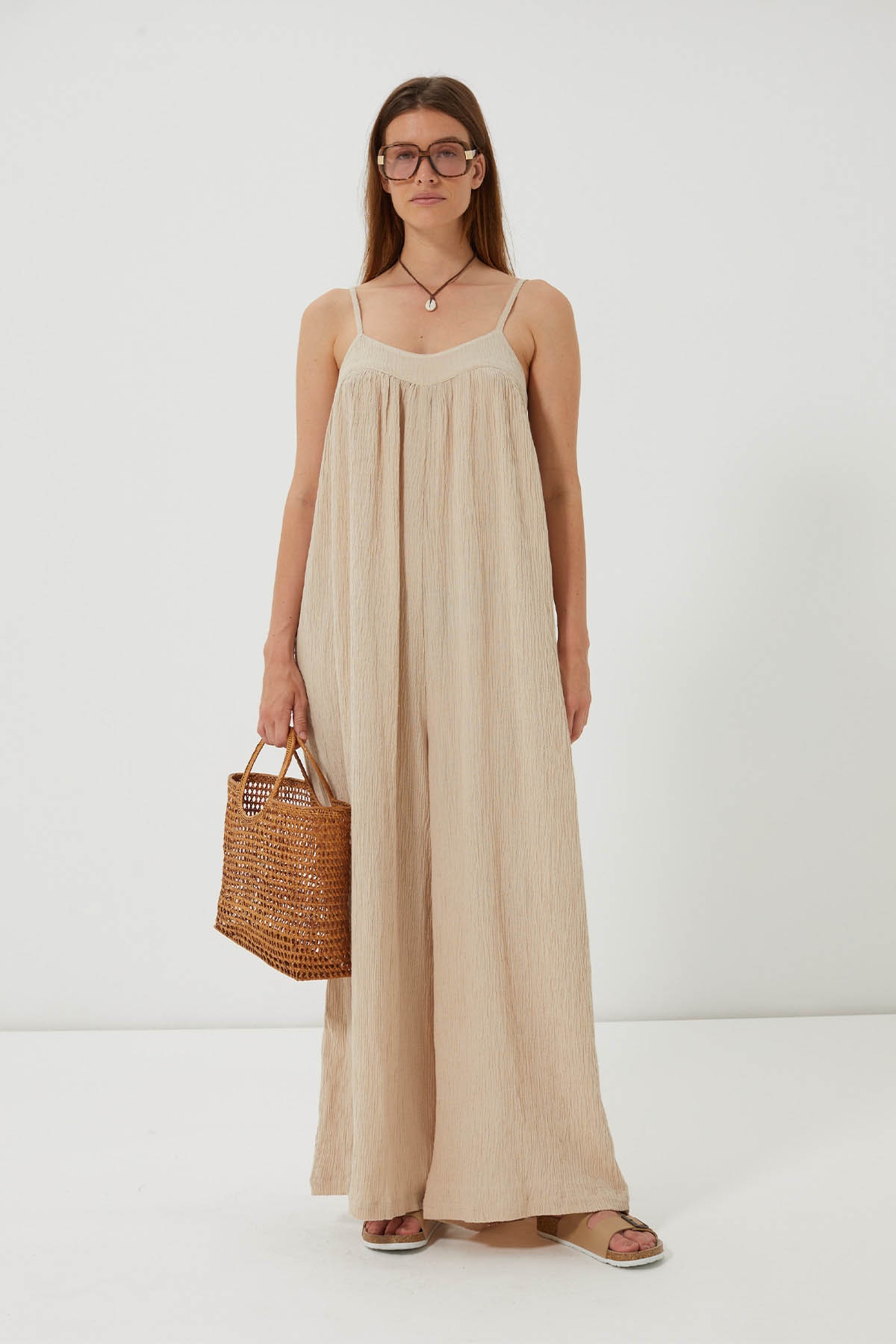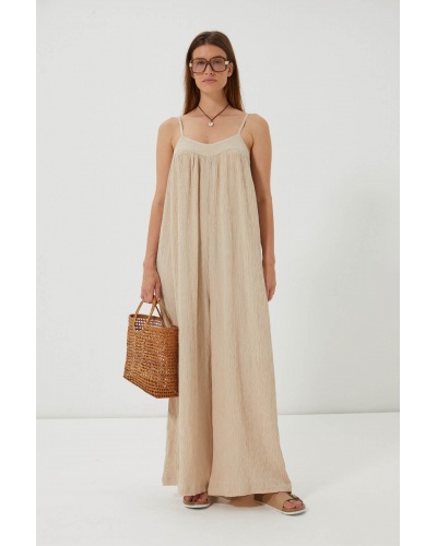 Natural elegance and absolute fluidity with the Labun jumpsuit. Made from textured cotton gauze, it offers an ultra-loose, fluid and airy fit.