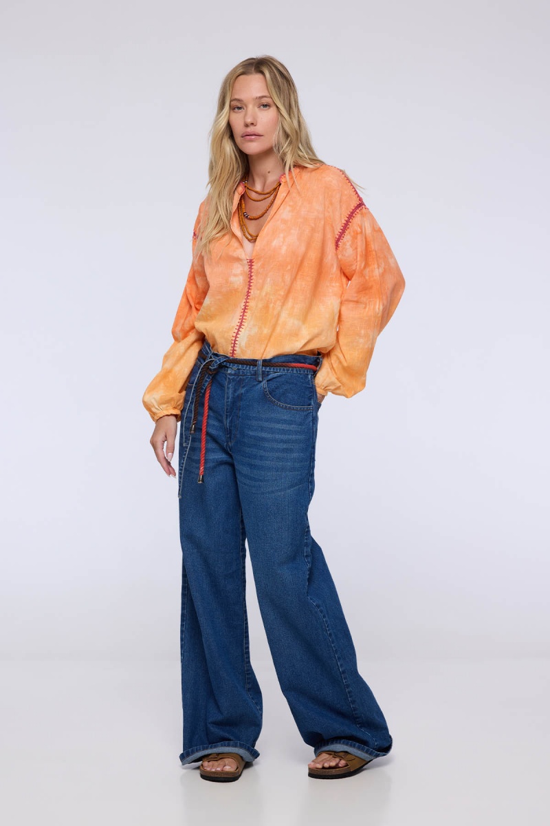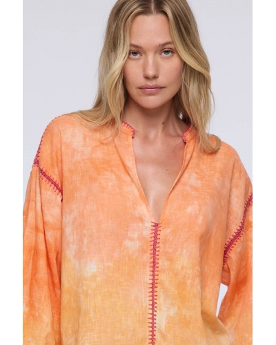 The Bandeja blouse brightens up your summer wardrobe with its orange hue and subtle tie-dye effect. Made from lightweight fabric, it offers a fluid drape and absolute comfort, ideal for sunny days.