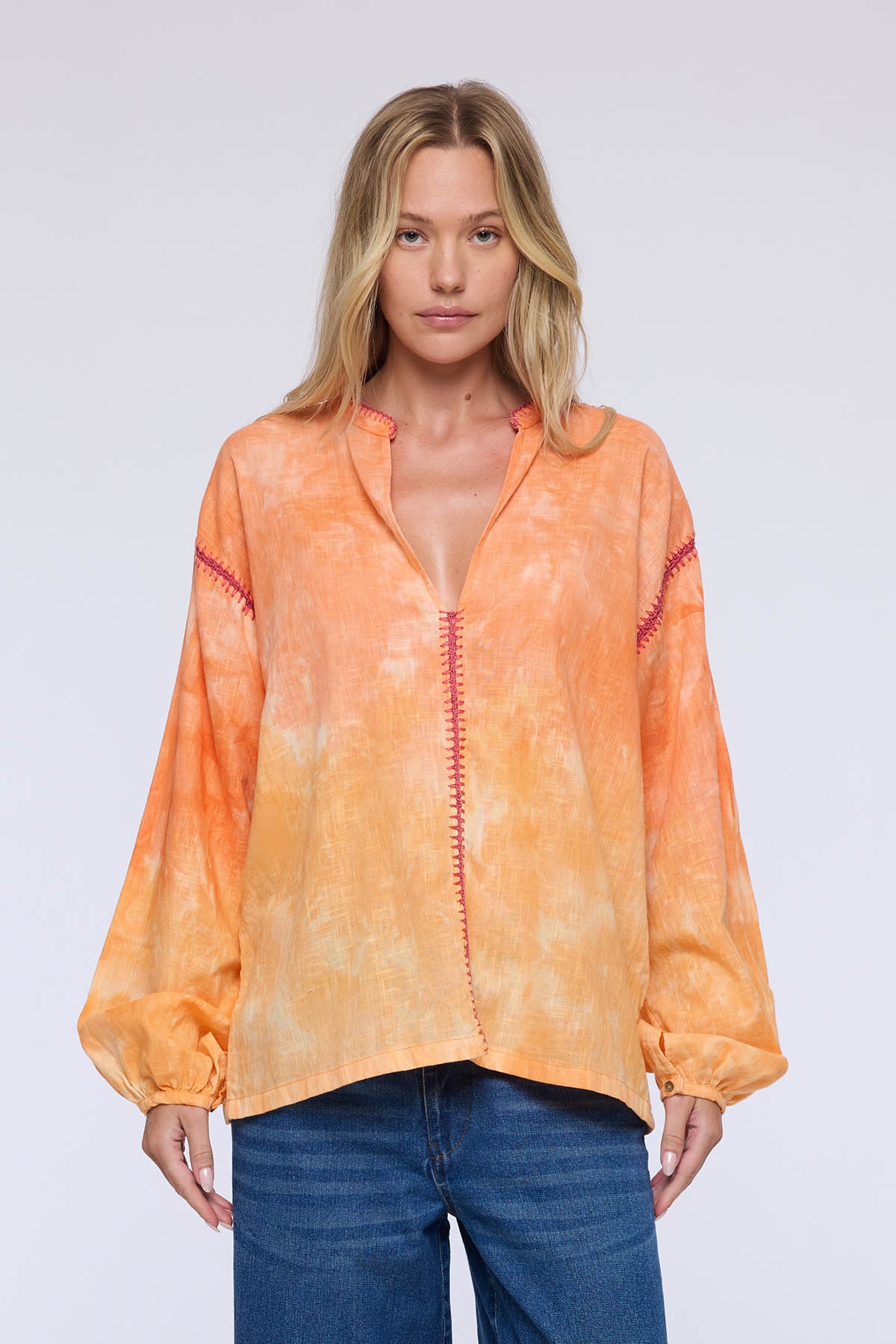 Tie-dye and embroidered blouse