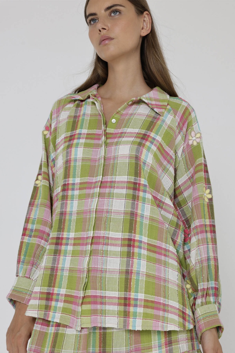 Checked shirt with embroidery