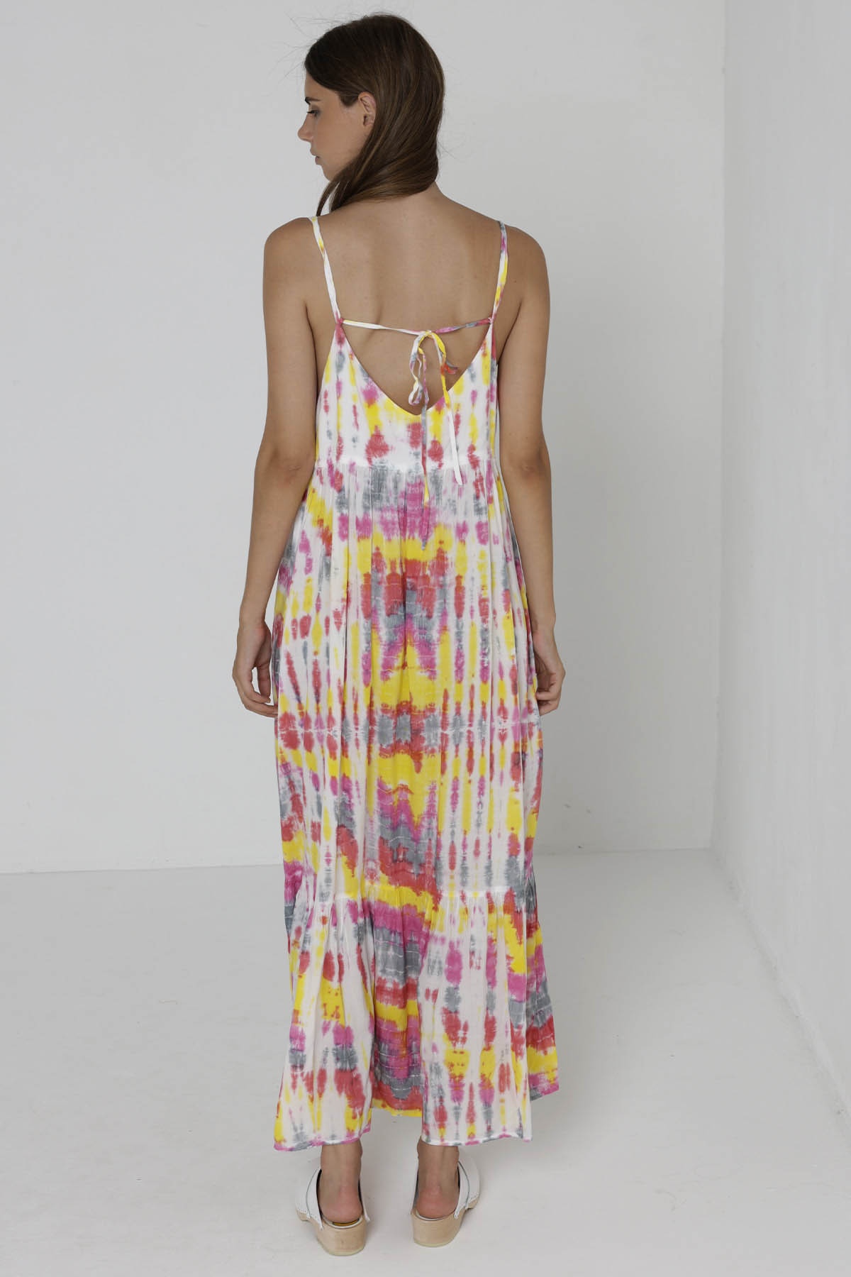 Adopt a romantic and vibrant look with the Nicolo dress in tie&dye.