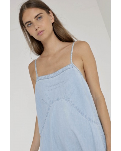 Sleeveless denim jacket . Straight cut . Tailored collar . Button front closure . Side pockets . Removable tie belt . Belt loop in...