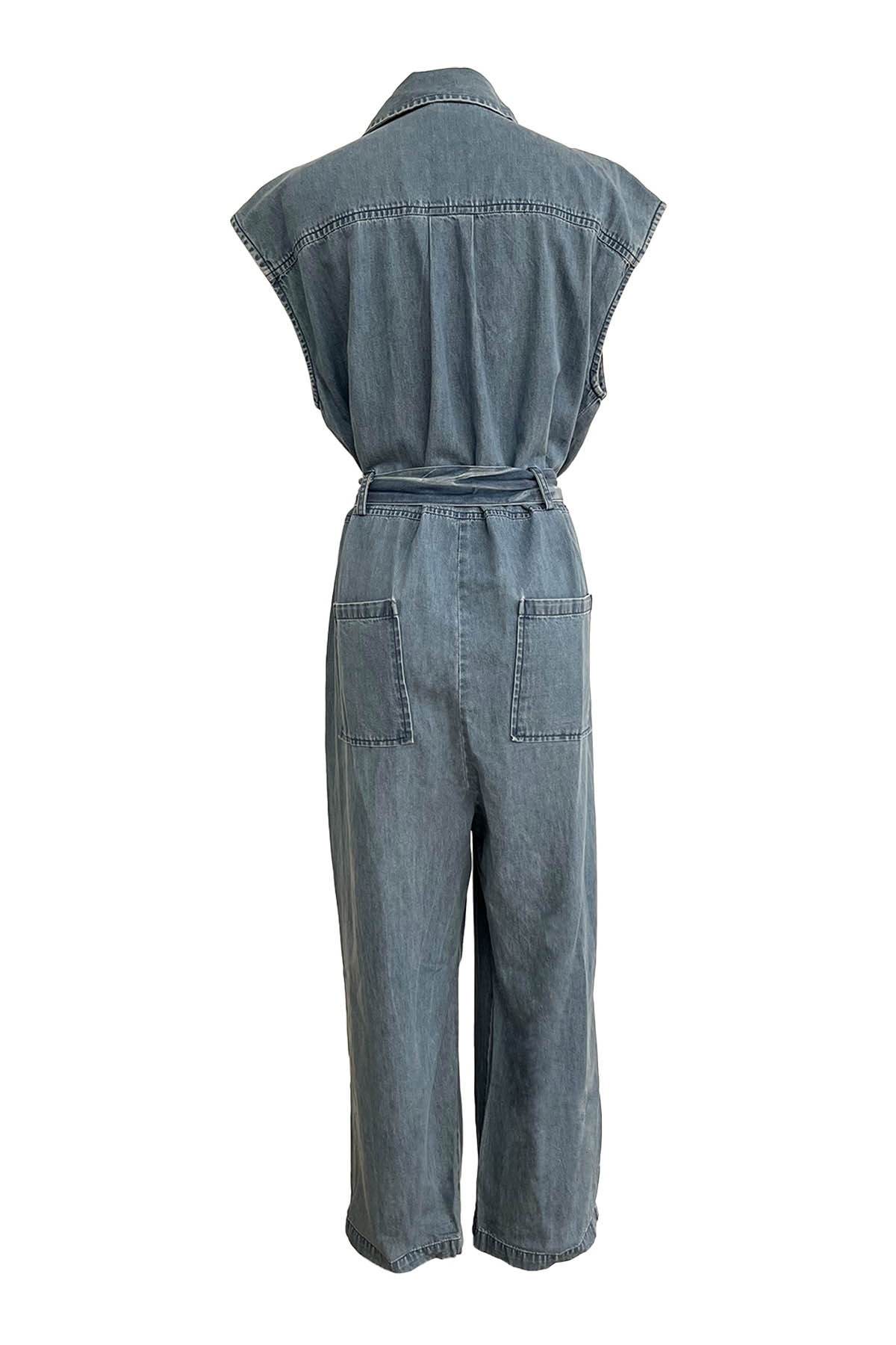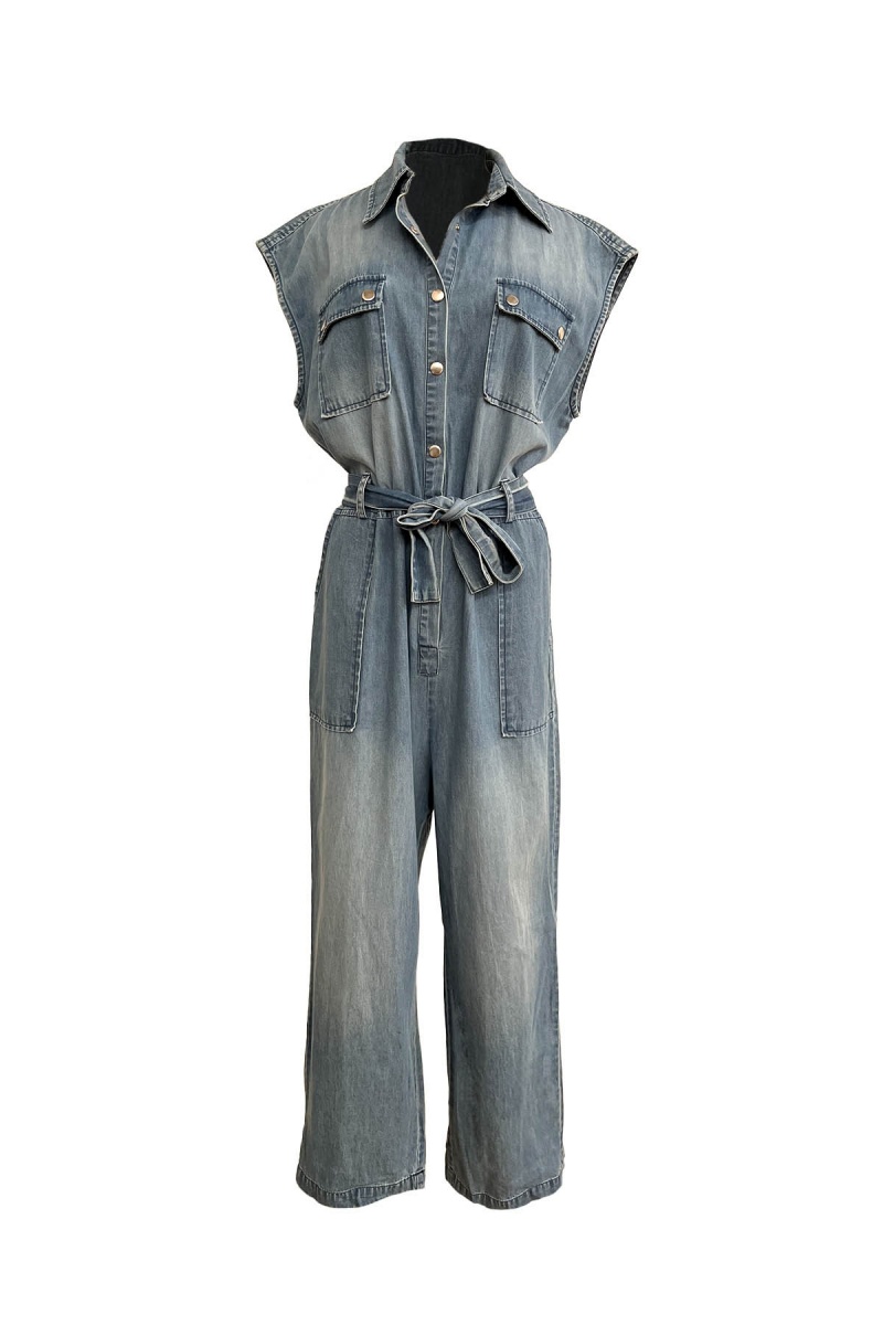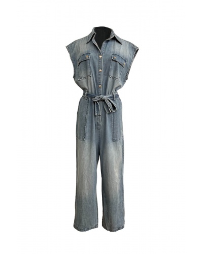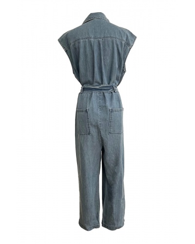 Sleeveless denim jumpsuit