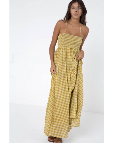 Plain satin maxi dress . Loose fit . Sweetheart neckline with button closure . 3/4 puffed sleeves . Buttoned cuffs . Italian side...