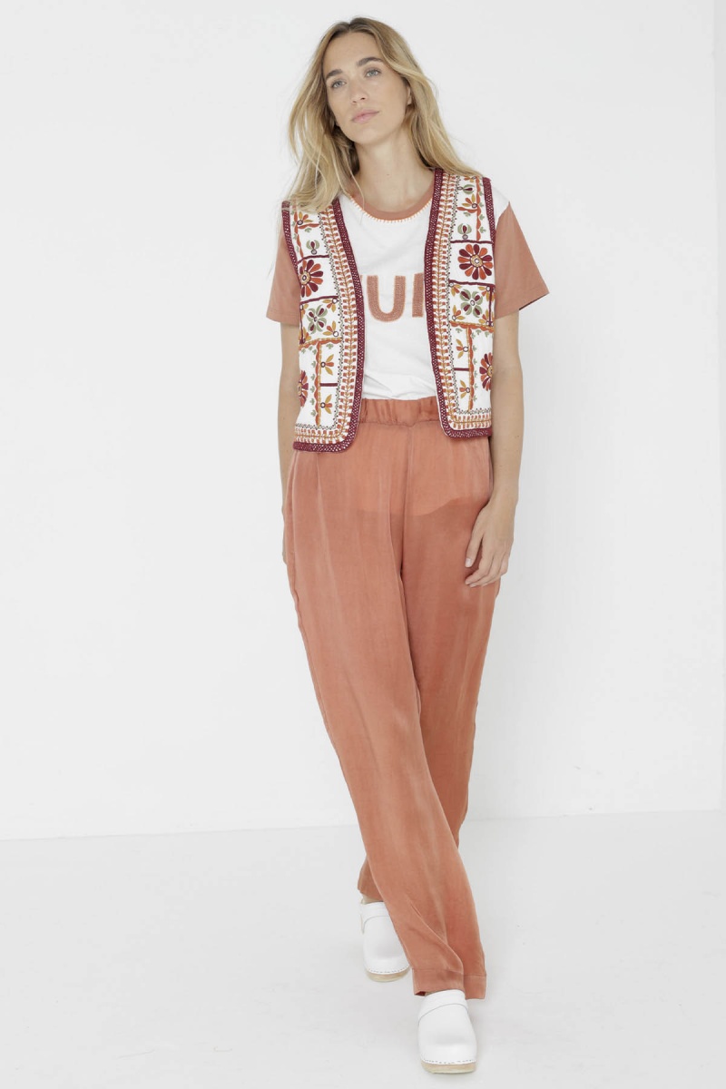 Maggie satin pants are the epitome of casual elegance. Their rustic color adds a touch of warmth to your wardrobe.