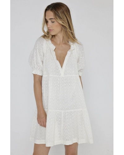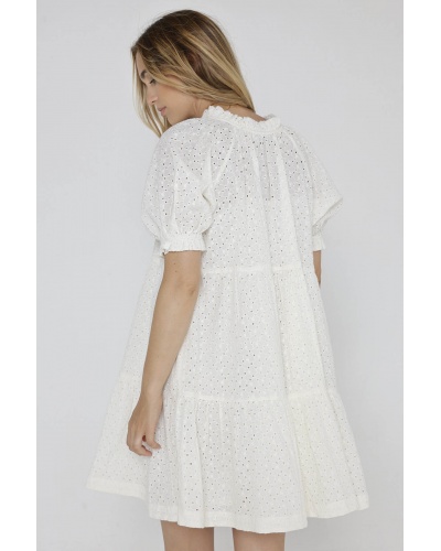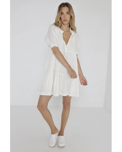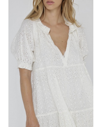 Let yourself be seduced by the Kristen dress, which combines femininity and comfort with its loose fit and white lace details.