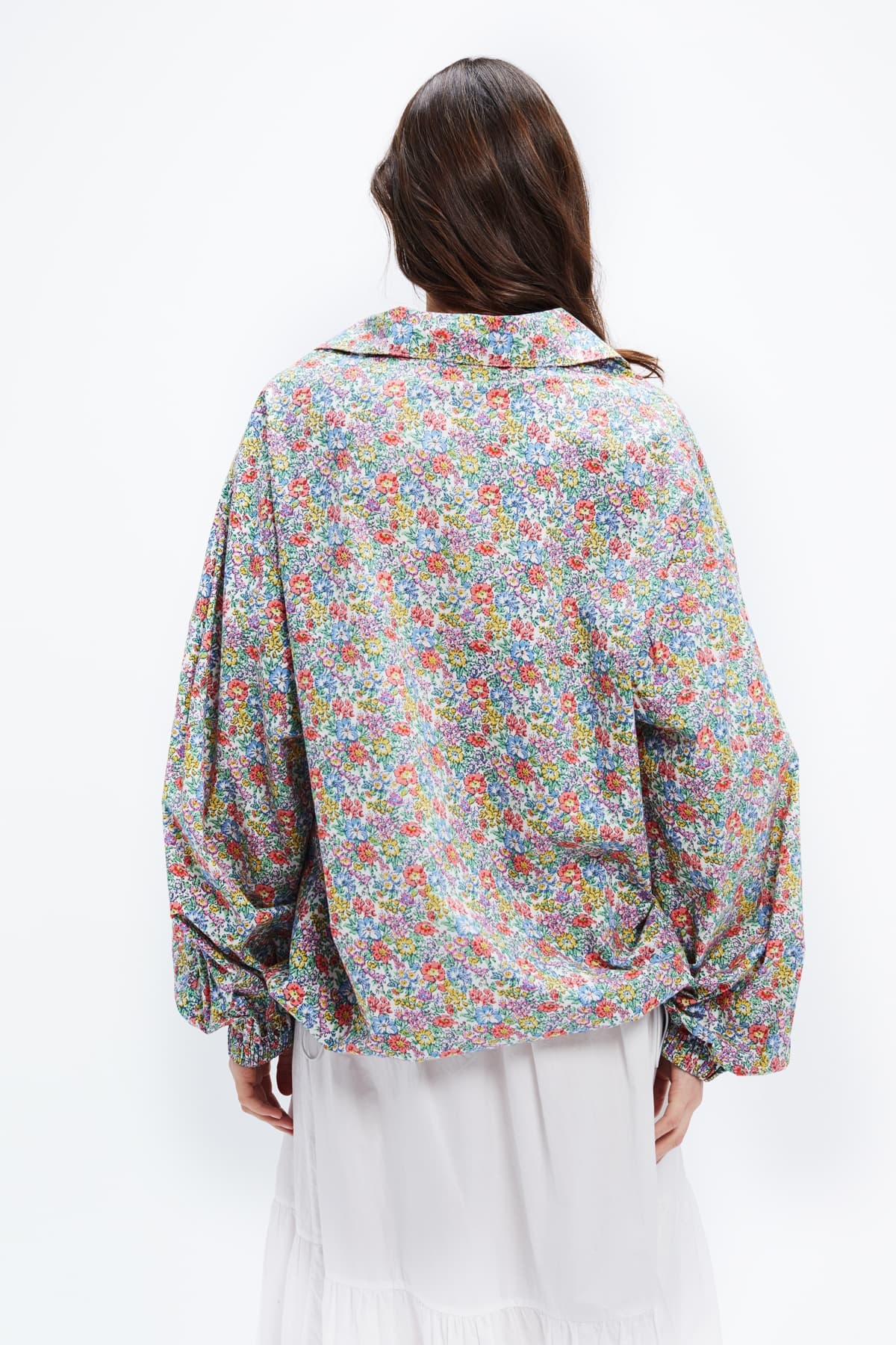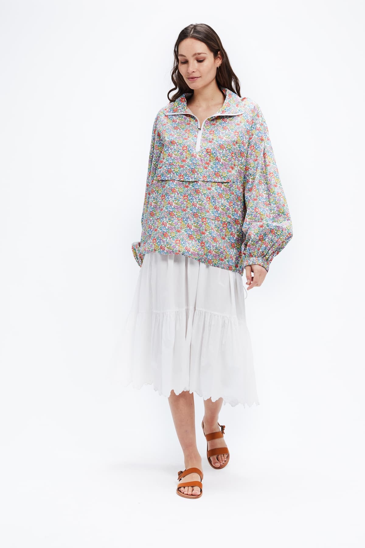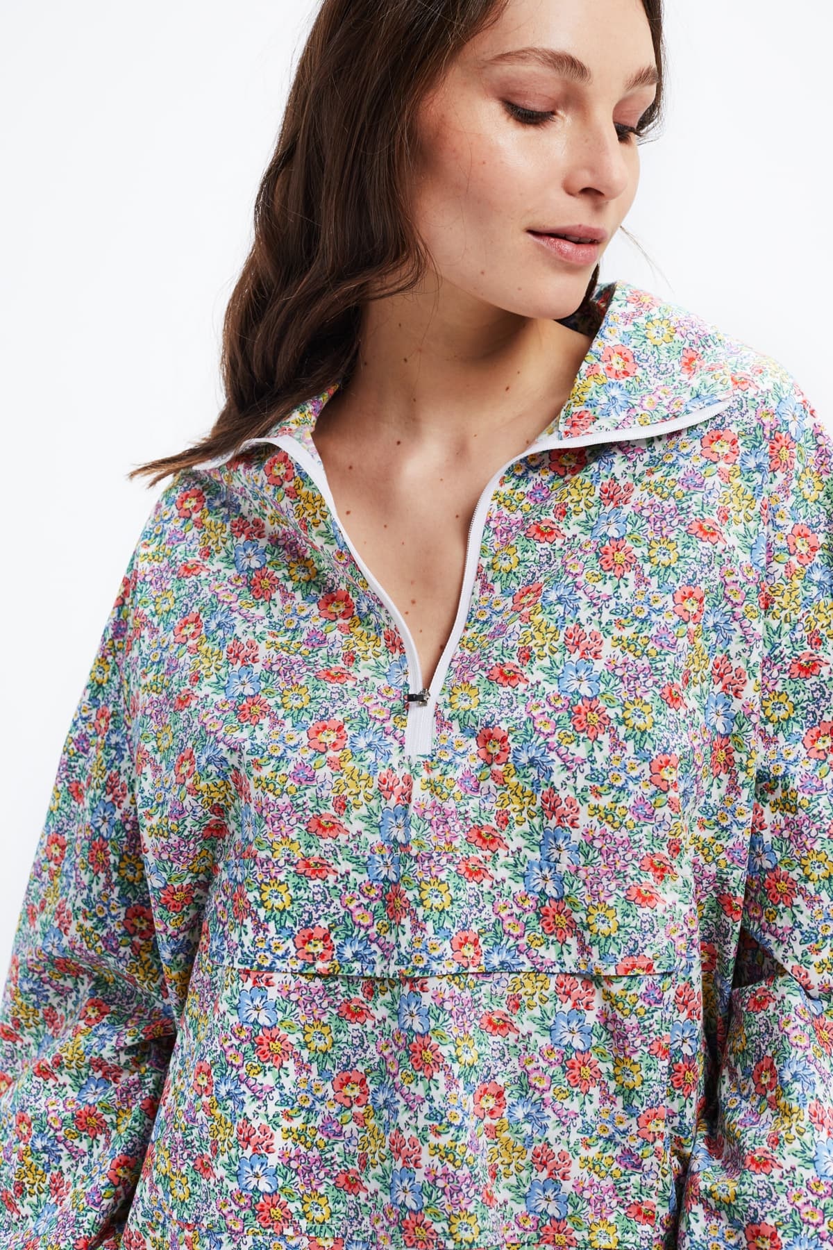 Inspired by the 90's, the Florent windbreaker has an oversized cut and a liberty print cotton.