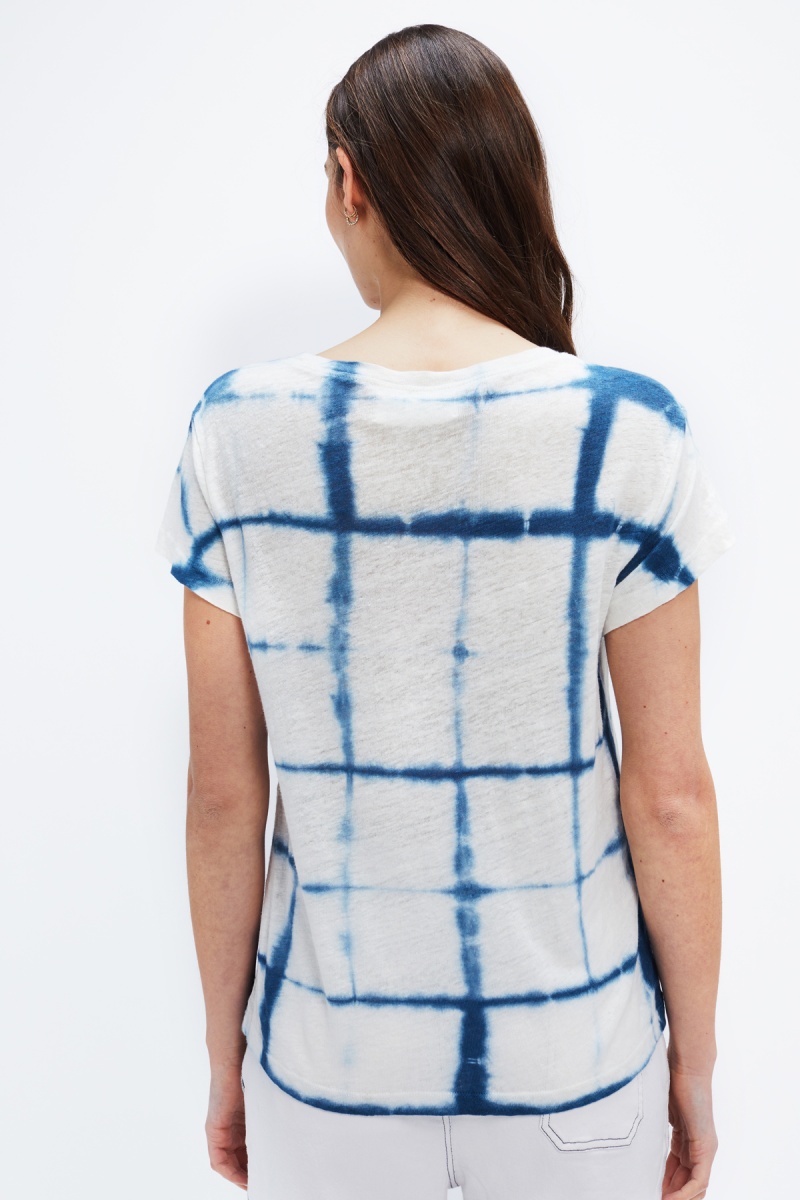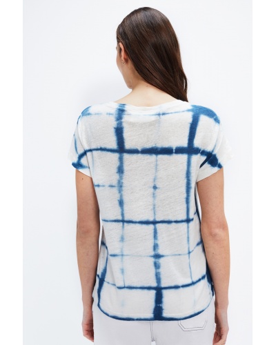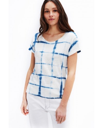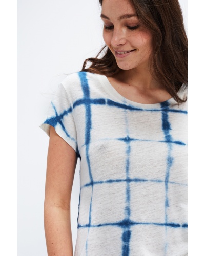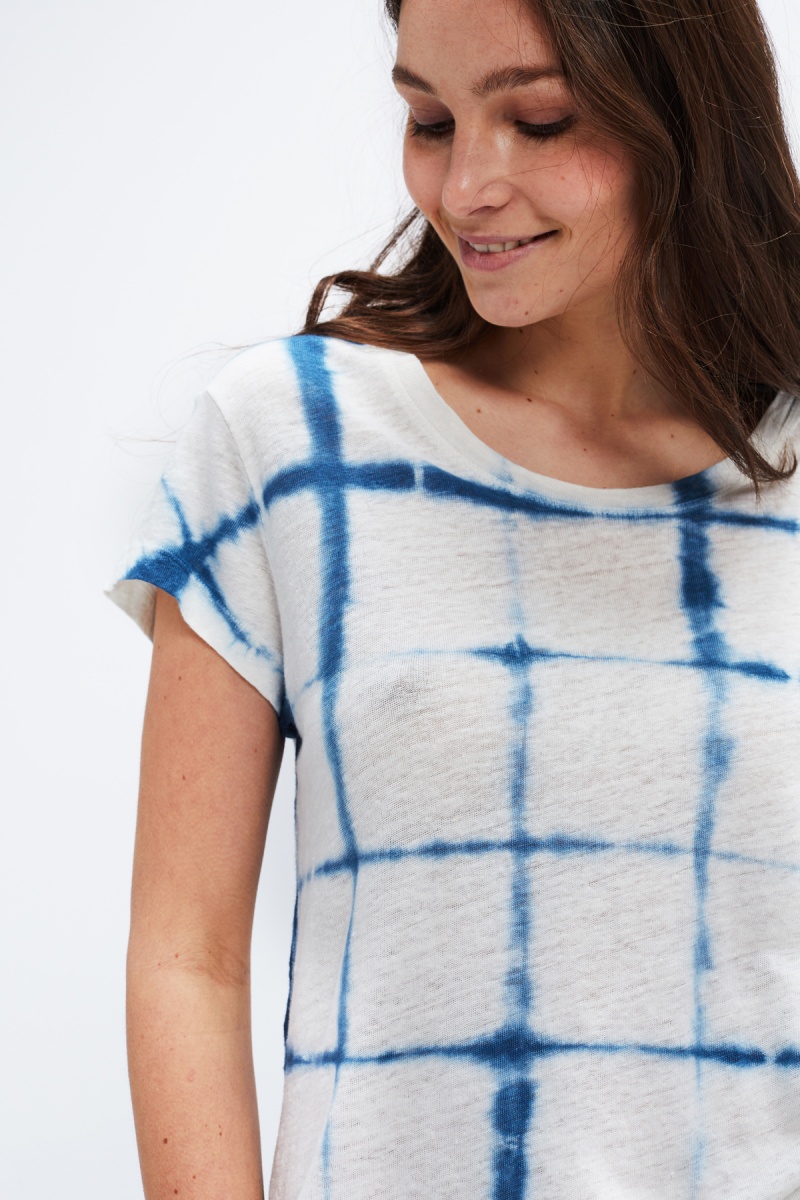 Colourful art dye T-shirt . Wide cut . Short sleeves with wide hem . Embroidered round neckline Choose your usual size