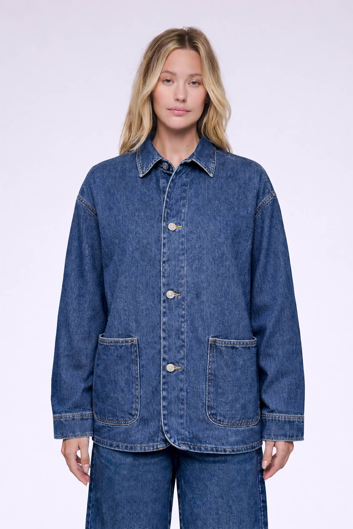 Veste en denim brut . Coupe droite . Col chemise . Fermeture boutonnée . Manches longues . Poignets boutonnés . Deux poches plaquées...