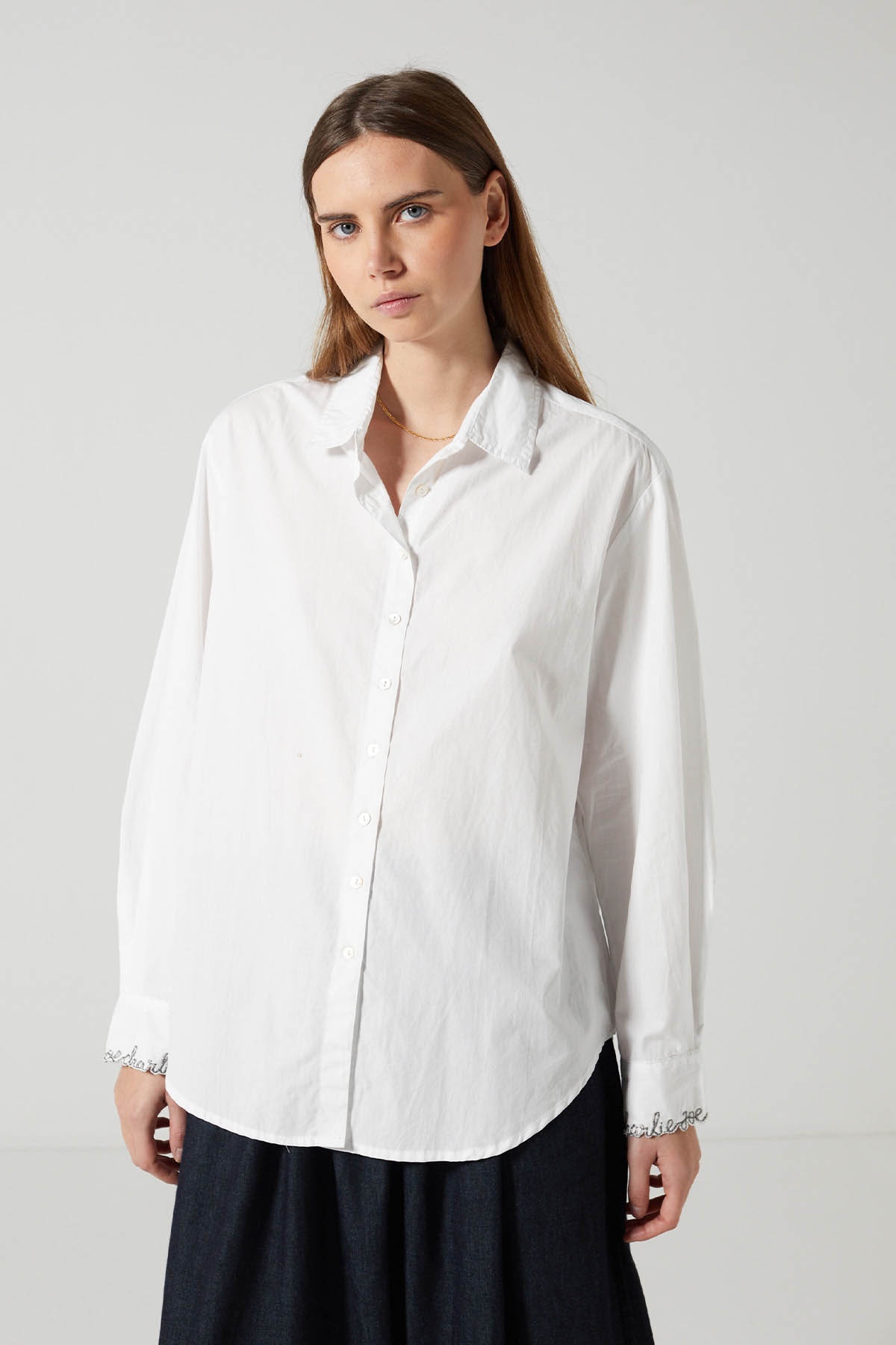 Chemise unie avec broderie . Coupe légèrement oversize . Col chemise . Patte de boutonnage devant . Manches longues . Poignets boutonnés...