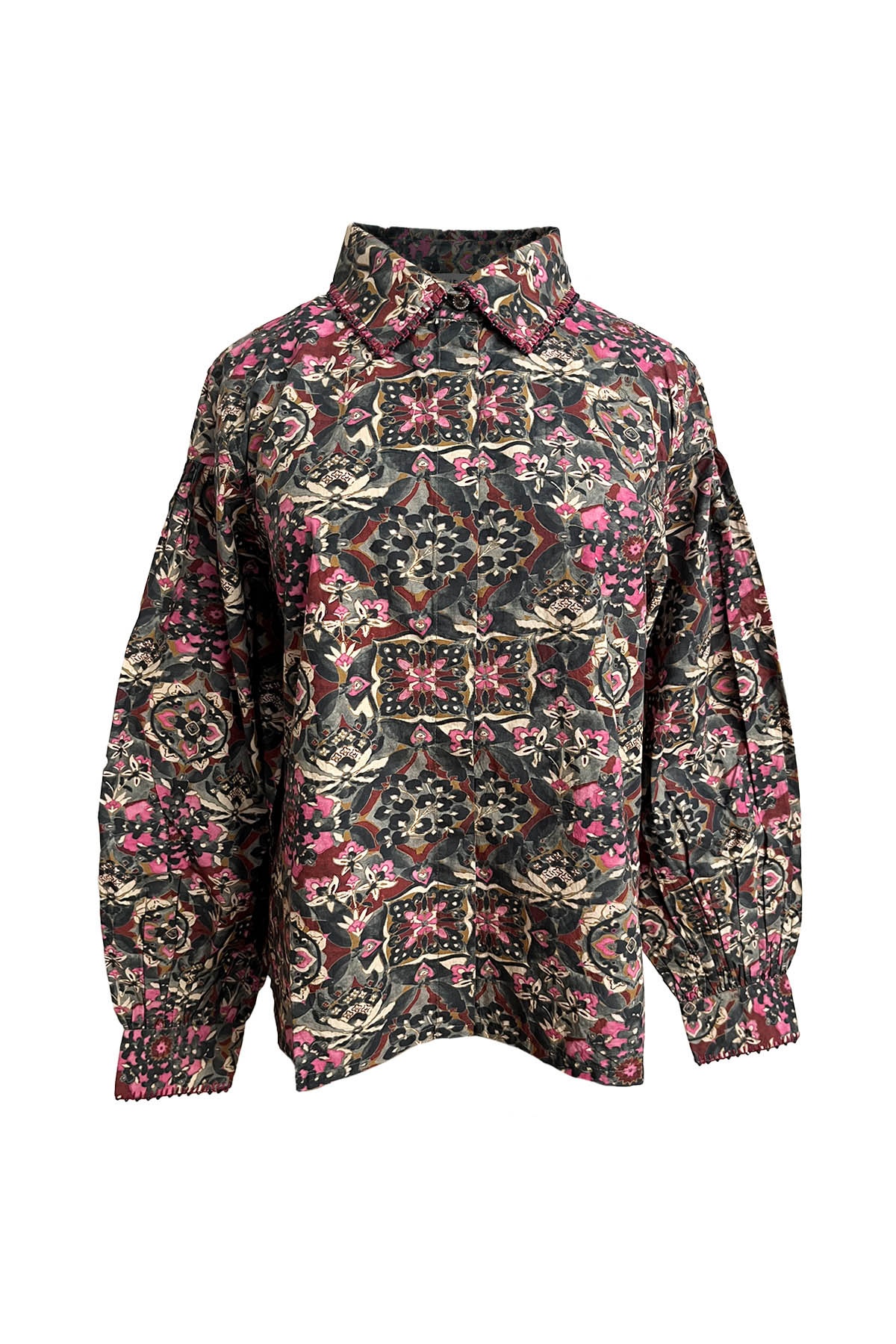Quick view Chariot Chemise KAERI Prix 180,00 € Chemise en coton à motifs géométrique et broderies . Coupe large . Col chemise . Patte de boutonnage cachée . Manches longues bouffantes...