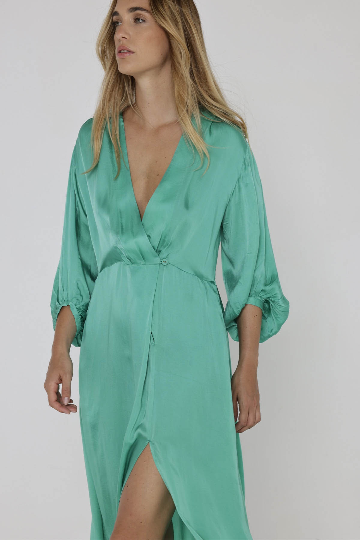 -60% Quick view Chariot Robe JAMY Prix habituel 255,00 € -60% Prix 102,00 € Robe longue satinée unie . Coupe ample . Encolure cache cœur fermée par un bouton . Manches 3/4 bouffantes . Bas de manches boutonnés ....