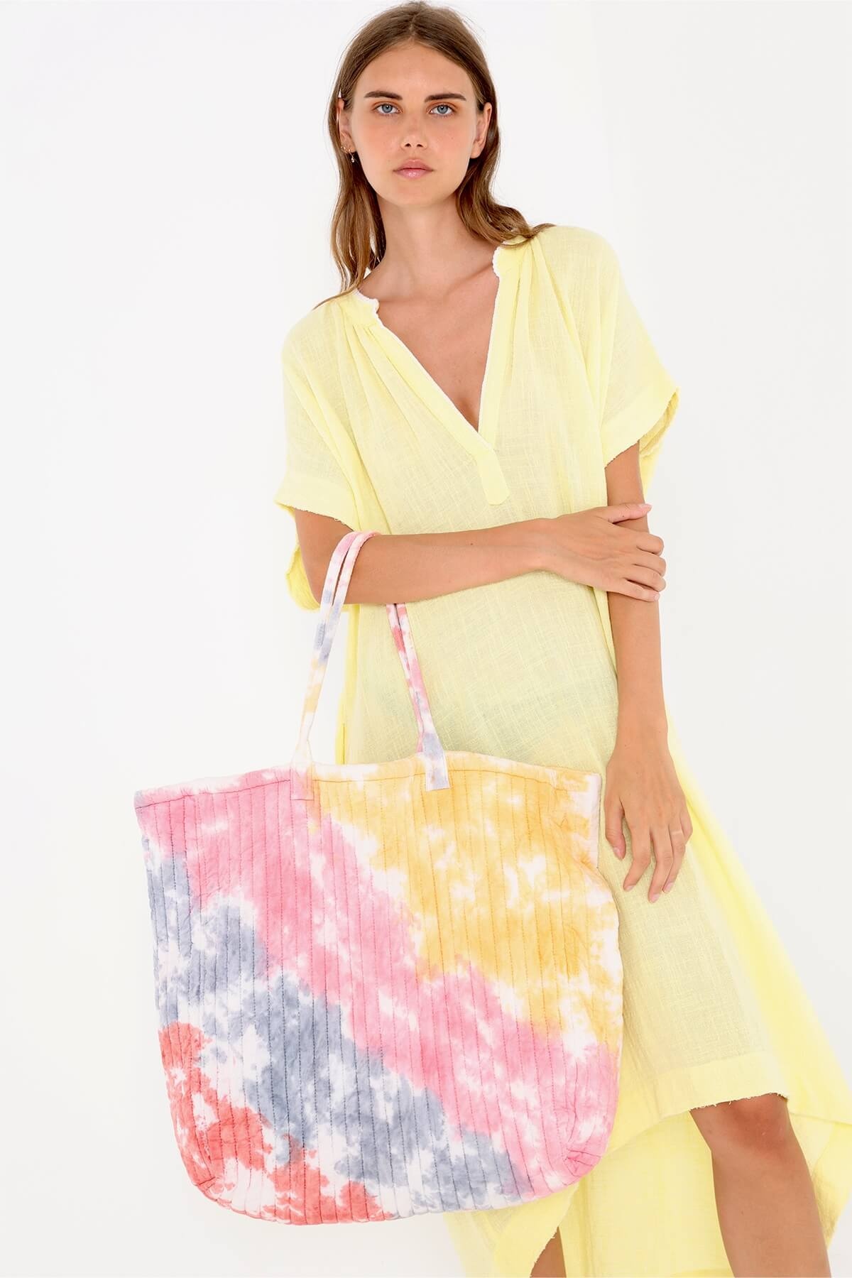 Laissez vous séduire par notre maxi Totebag Mira. En tie&dye coloré, il apporte de la couleurs à votre look tout en restant doux. Idéal à la plage comme en ville, sa taille permet d’y glisser tout ce que vous voulez jusqu’à pourquoi pas l’utiliser comme sac de voyage ? A vous de voir, mais promis, c’est un bon conseil.