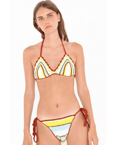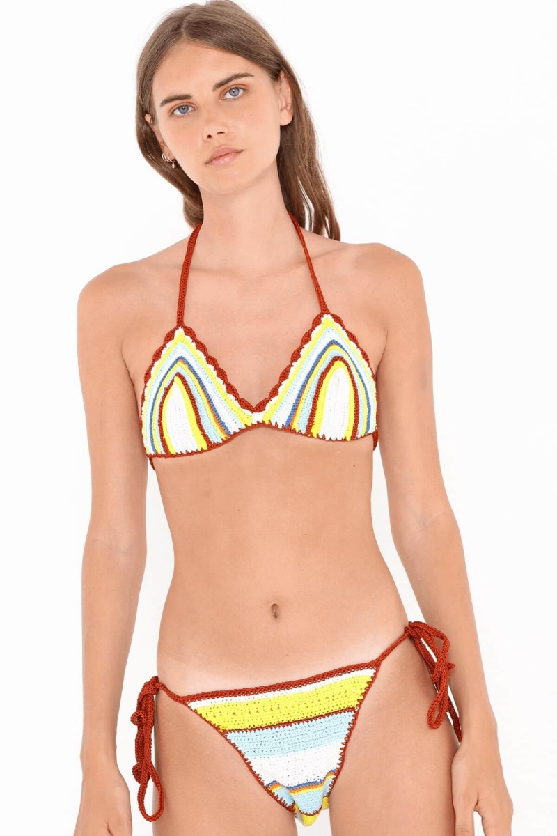 Découvrez notre toute dernière nouveauté en ligne, le bikini Eros. Ses couleurs inspirés du soleil et de la mer vous promettent un été vitaminé. En crochet, il est aussi beau que confortable. Se glisse parfaitement sous une petite robe qu'en brassière, crop top lors d'une soirée sous une chemise ouverte ou nouée.