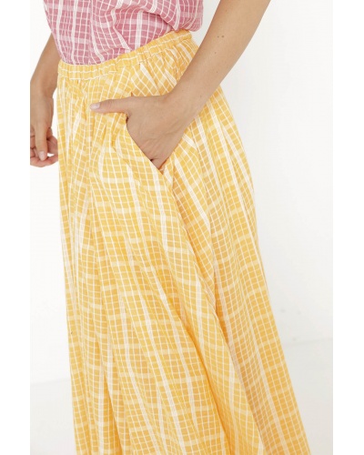 La jupe vichy Amber est l'essentiel de l'été, alliant style et confort. Sa coupe longue et volumineuse, associée aux fentes sur les côtés, crée une silhouette féminine et moderne.