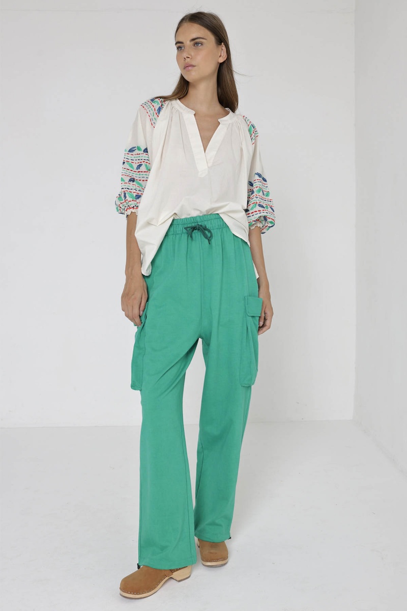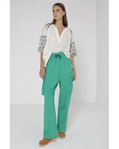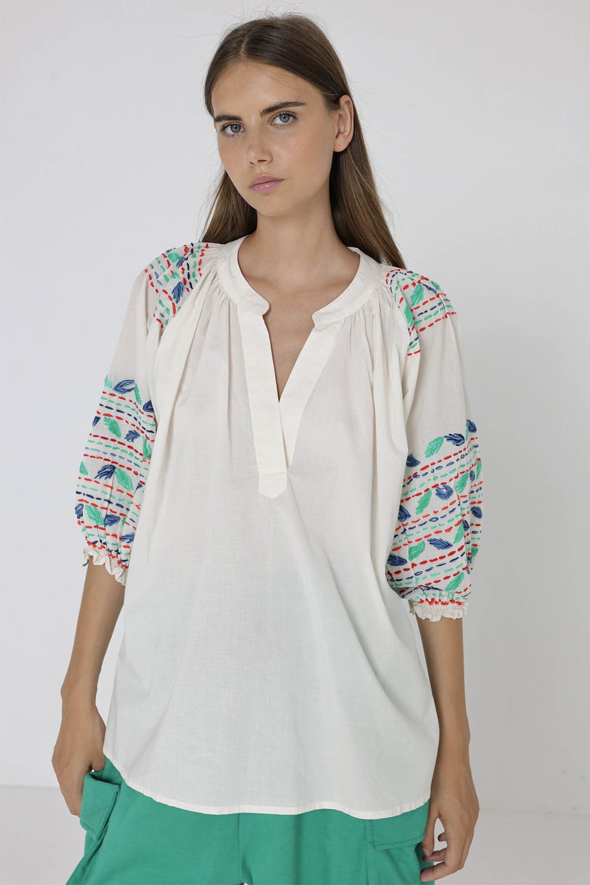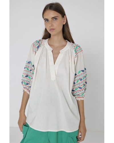 La blouse Brenda allie élégance et confort avec sa coupe ample et ses manches 3/4 bouffantes.