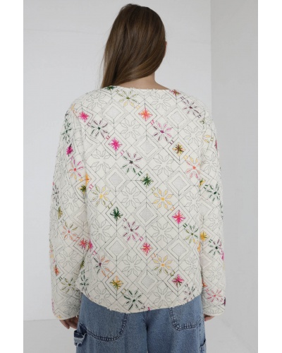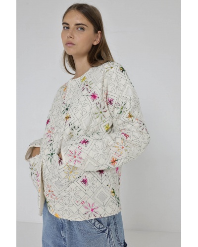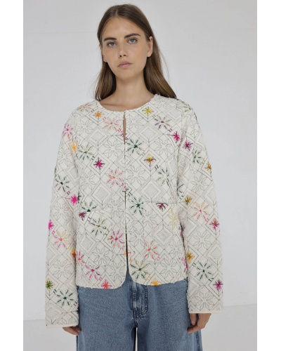 Ses motifs floraux sont accentués par des broderies colorées, apportant une touche artisanale à cette pièce unique. Laissez vous séduire par le confort et l'originalité moderne de la veste Cameron.