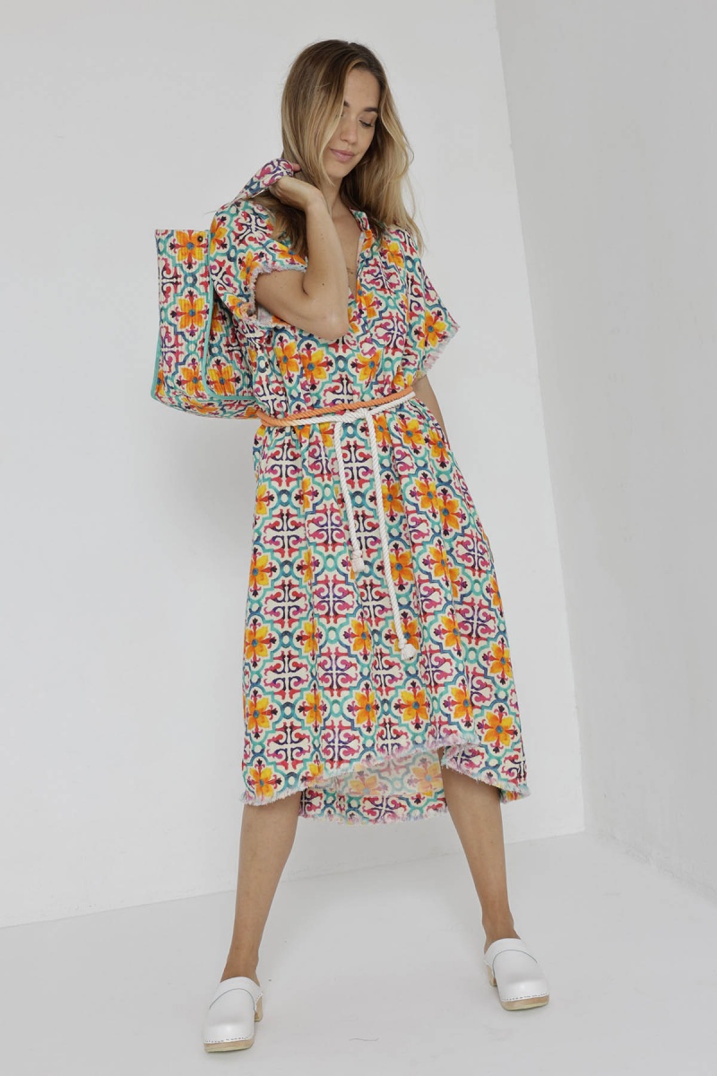 Son motif coloré crée une fresque visuelle dynamique, rendant la robe Jodie unique et pleine de vie. Sans oublier le côté pratique de cette dernière grâce à ses poches.