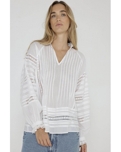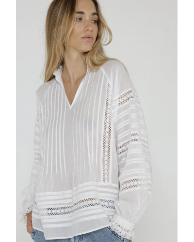 -60% Quick view Chariot Blouse BHOMA Prix habituel 165,00 € -60% Prix 66,00 € Blouse en coton léger blanc . Coupe droite . Encolure tunisienne brodée avec lien à nouer . Manches 3/4 resserrées par un élastique au bas...