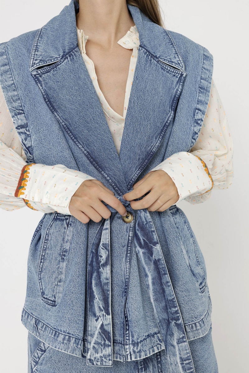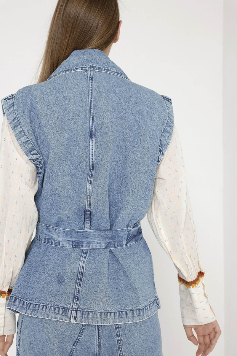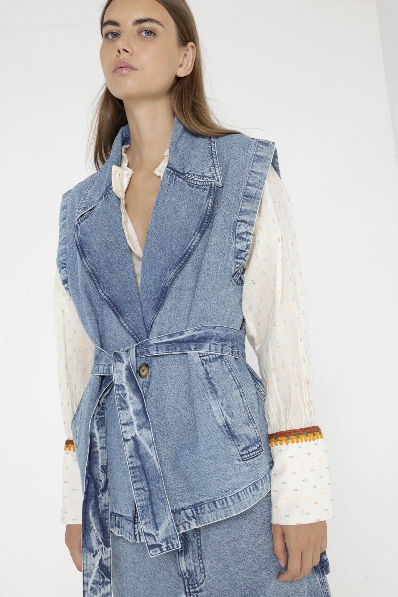 La veste Juana est la pièce parfaite cette saison, sa matière en denim légère vous permettra d'accessoiriser vos tenues sans avoir trop chaud. Portez-la ouverte sur une robe ou bien fermée avec la ceinture nouée par dessus une blouse ample pour une silhouette ajustée.