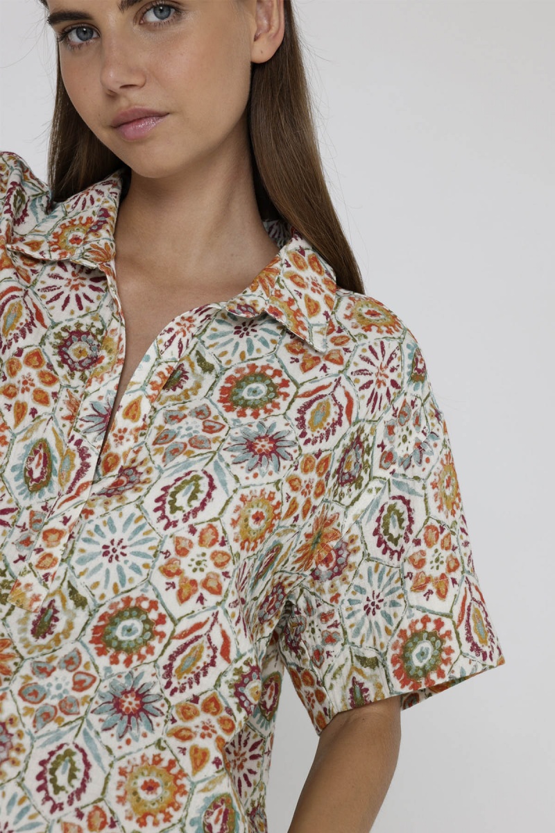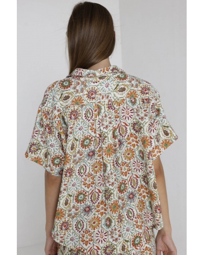 La blouse Mayra offre une allure tendance et originale avec son motif fleuri, sa coupe aux allures de t-shirt et son col chemise. Ample en coton, elle permet une grande liberté des mouvements et un confort à toute épreuve.