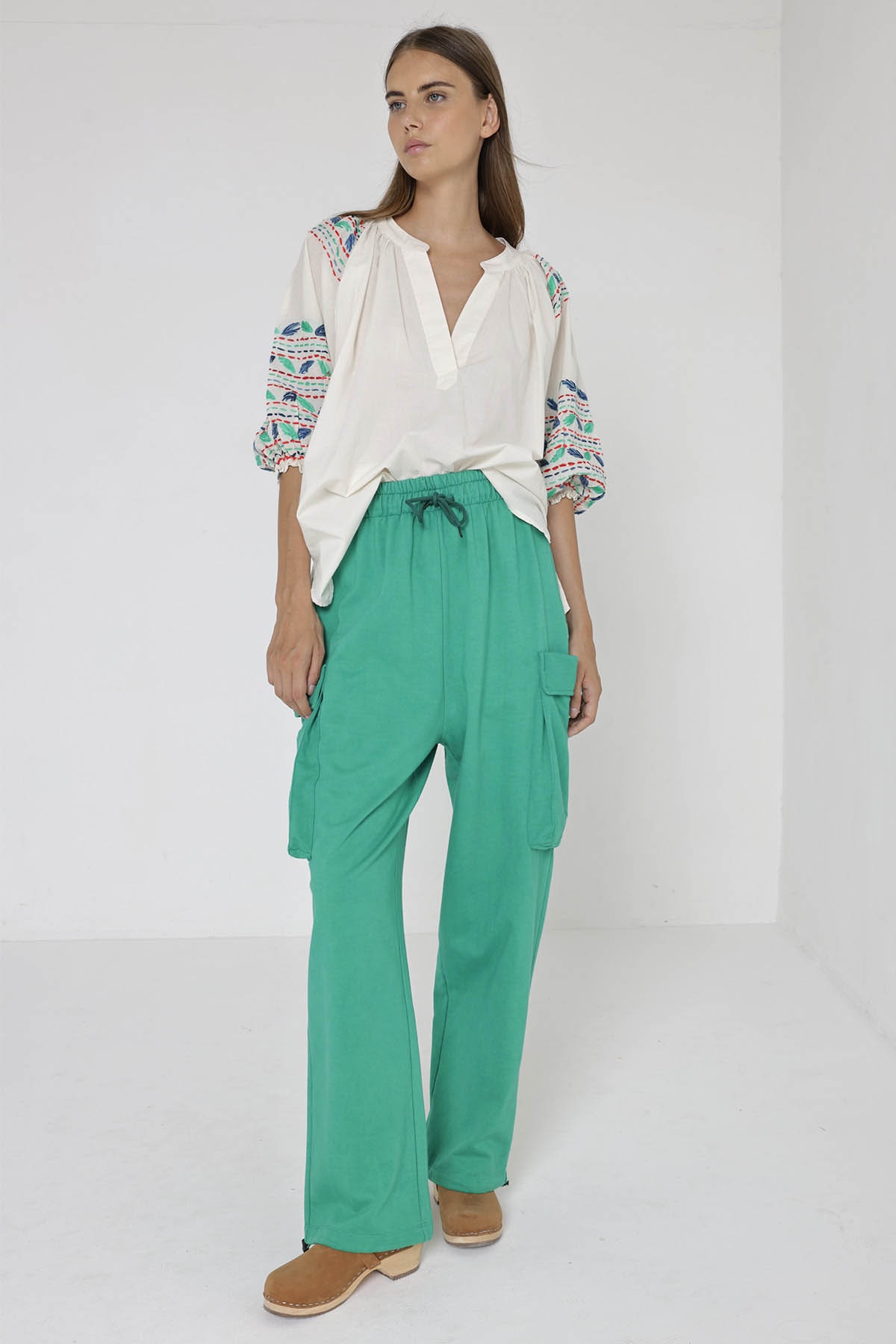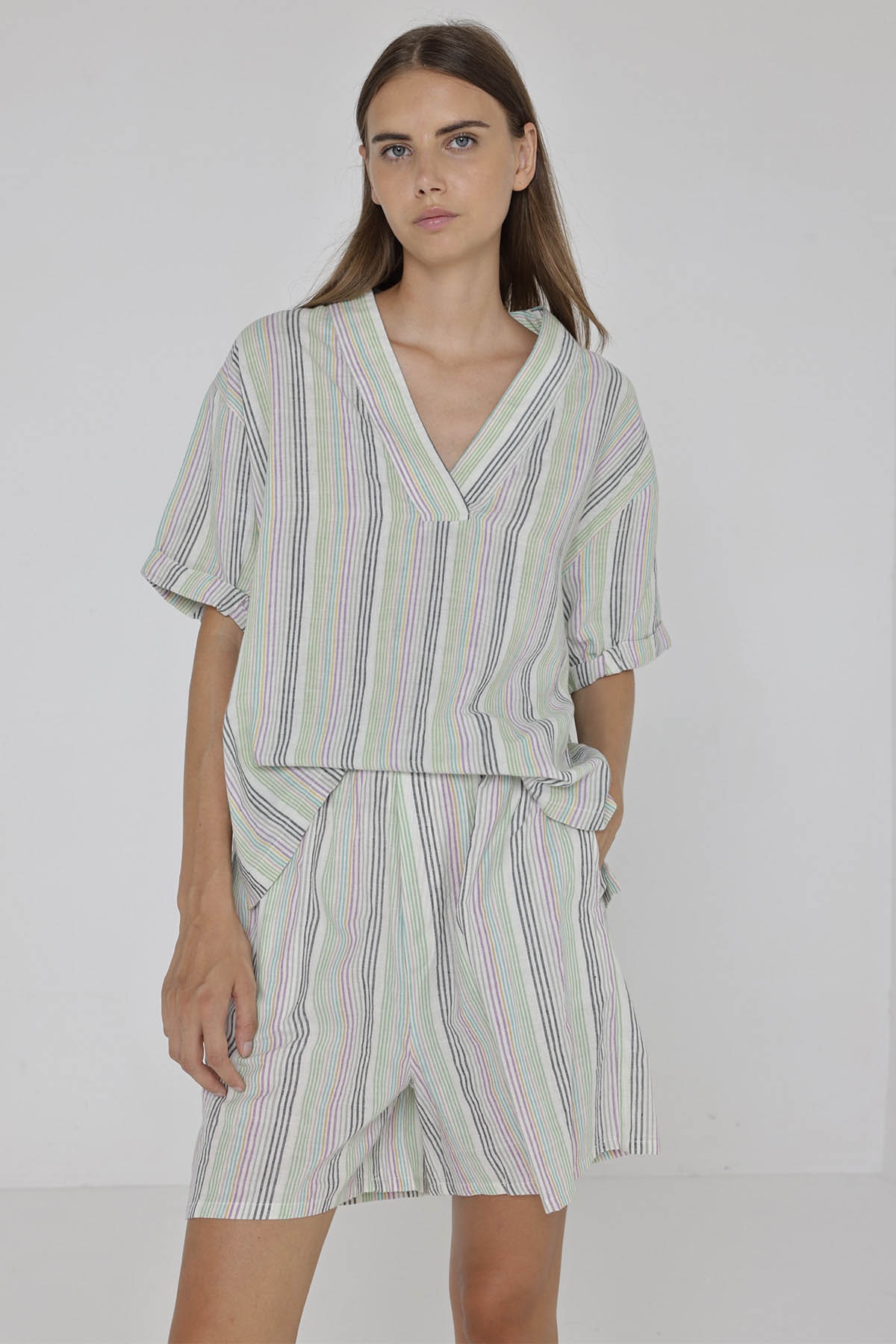 Le top Millie célèbre l'arrivée du printemps avec ses couleurs fraîches et colorées. Son col à rayures et ses broderies délicates ajoutent une touche de finesse à cette blouse ample.