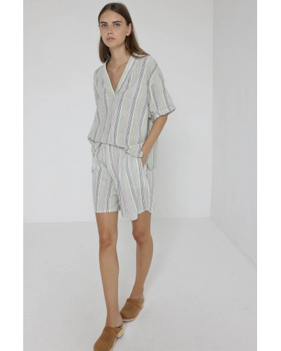 Adoptez un style décontracté et tendance avec le short à rayures Ralph. Ses rayures colorées ajoutent une touche vibrante à votre tenue estivale.