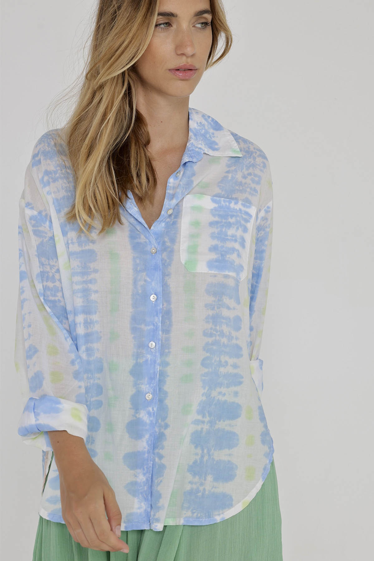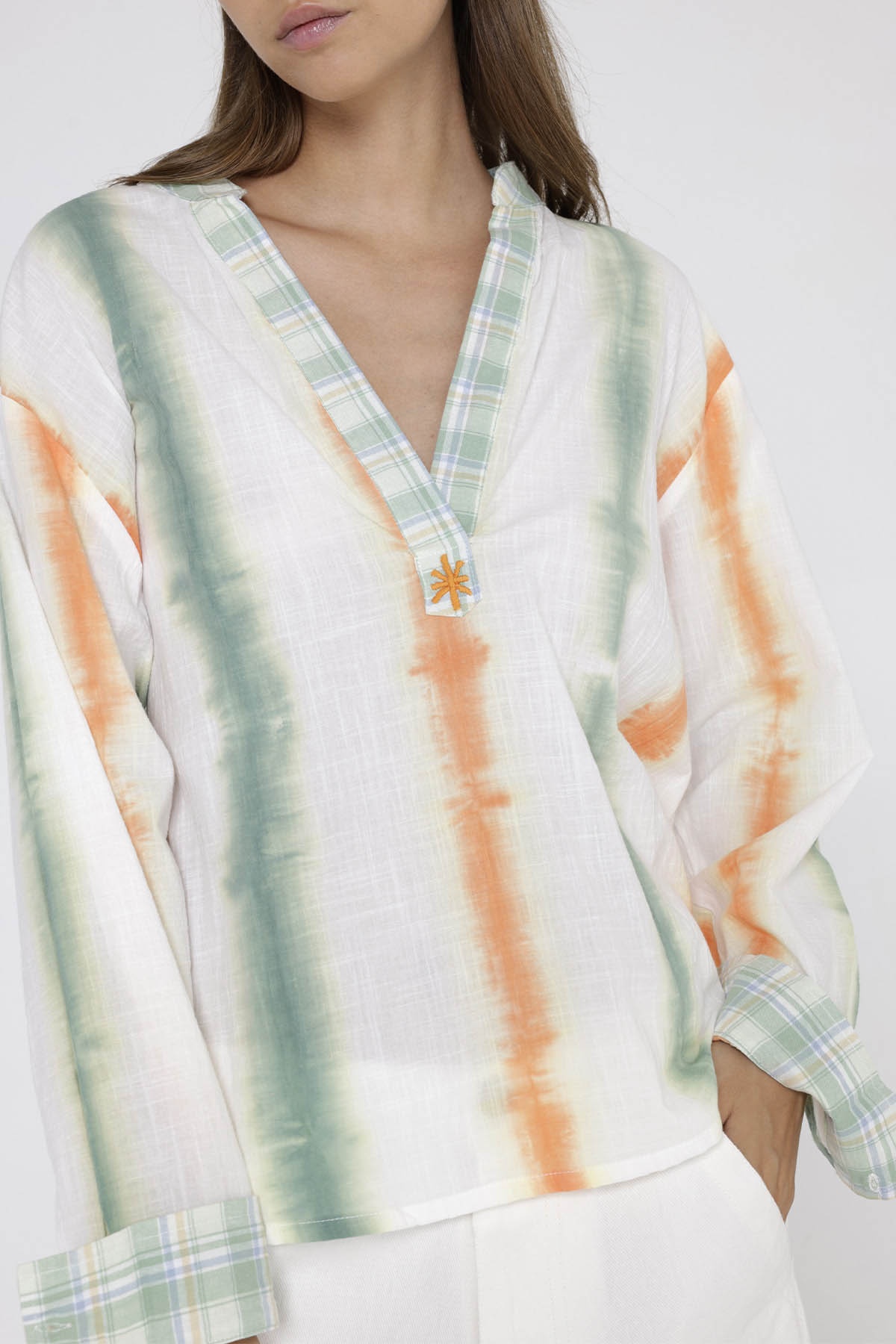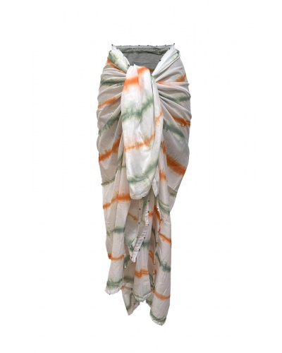 Doté d'un motif art dye vibrant et de délicats points brodés au bord du tissu, ce pareo peut être porté de différentes manières pour s'adapter à votre style et à l'occasion.