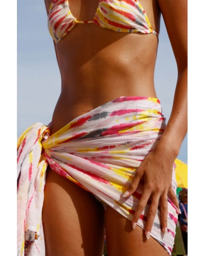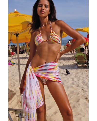 Le pareo Solas est une pièce polyvalente parfaite pour accompagner le bikini Desa ou en accessoires colorant votre tenue.