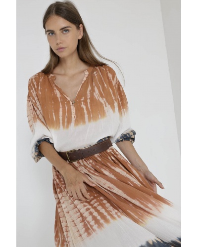 Laissez vous séduire par blouse Solja en art dye. Confectionnée dans un tissu coton agréable à porter, elle est parfaite pour la saison à venir, vous permettant de rester à la fois tendance et à l'aise.