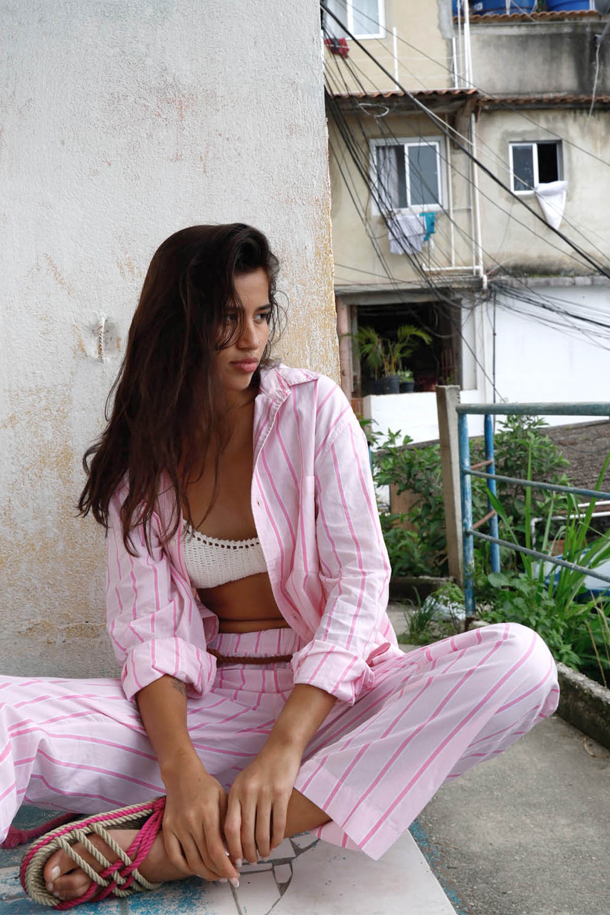 Ajoutez une touche de fraîcheur à votre garde-robe estivale avec le short Viky à rayures roses.
