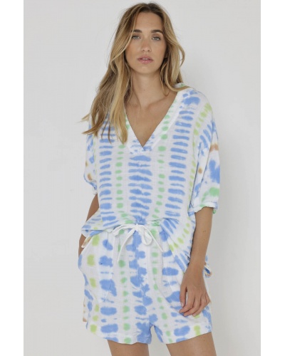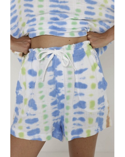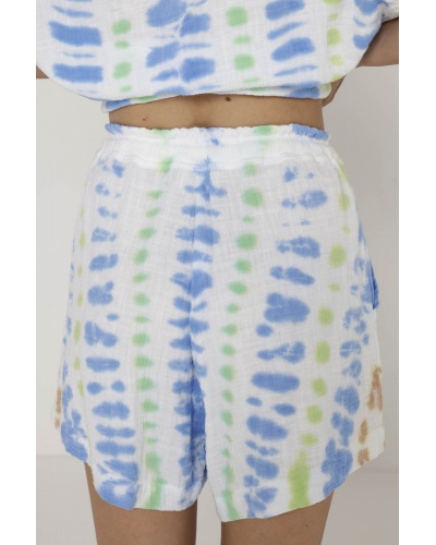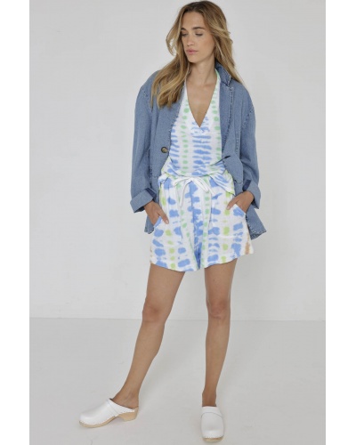 Plongez dans la saison estivale avec le short Jojie et son art dye coloré. Confectionné en coton léger, ce short offre un confort absolu pour la période à venir.