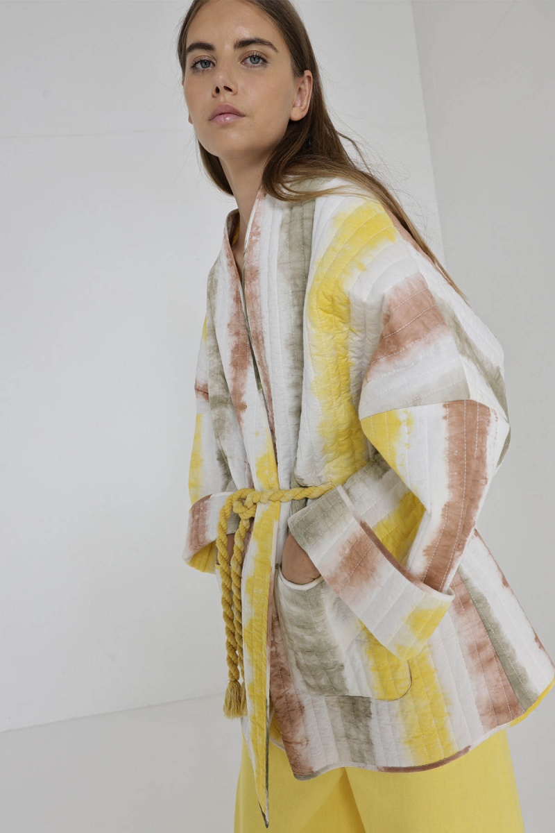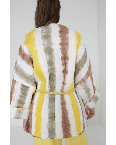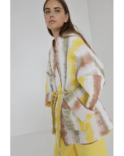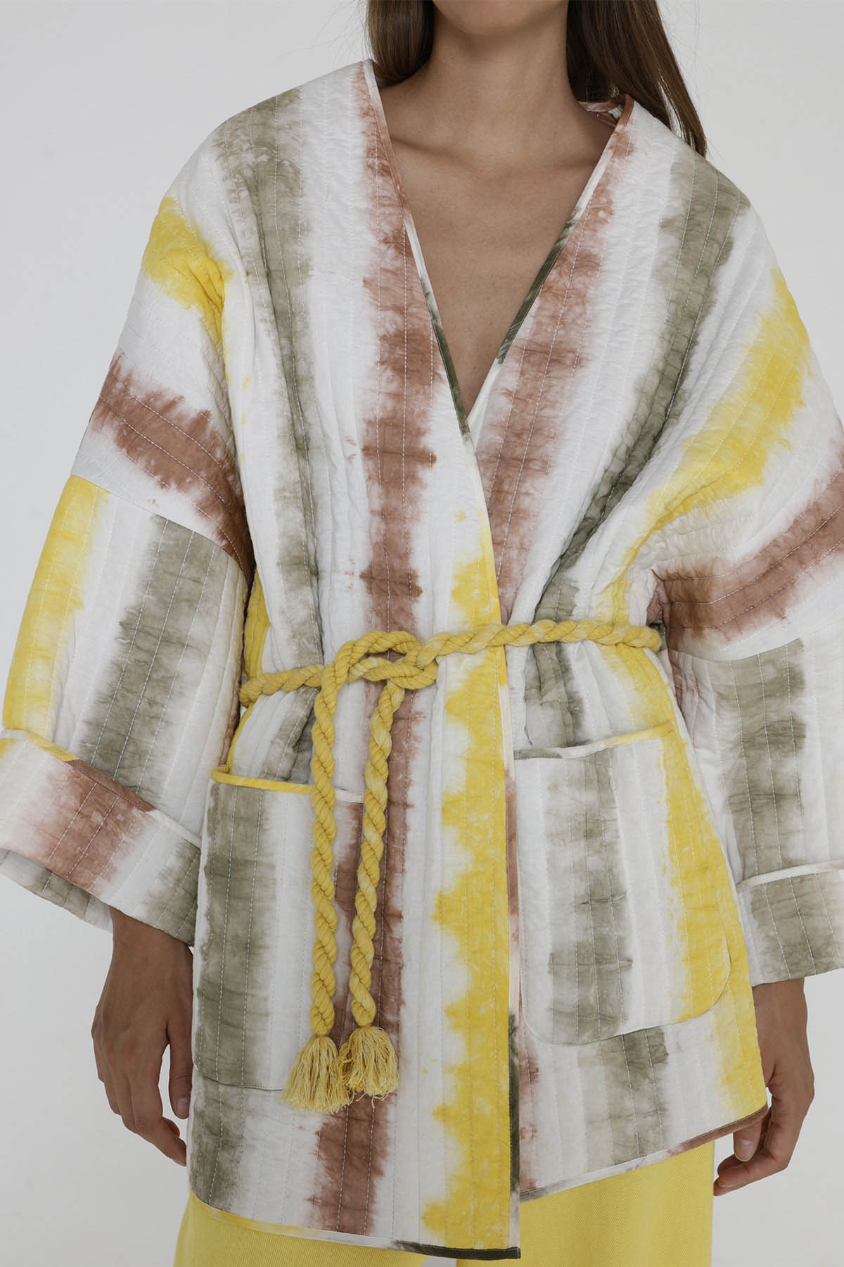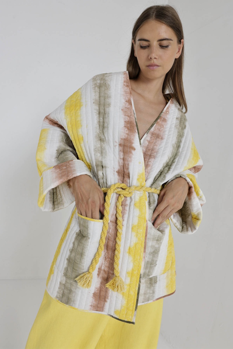 Son motif art dye coloré rendra unique tous vos looks. Vous pouvez ajuster le kimono selon votre préférence grâce au cordon à nouer pour le fermer.