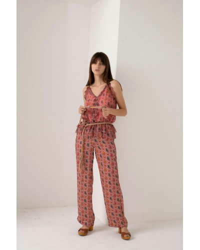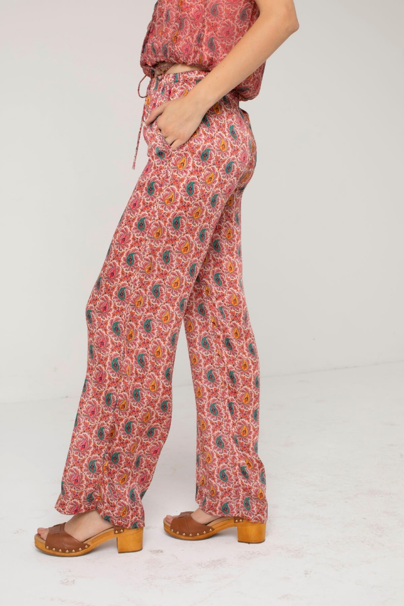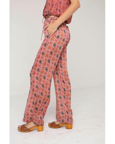 Fabriqué artisanalement en Inde, ils ont ici privilégié la viscose pour confectionner ce pantalon.