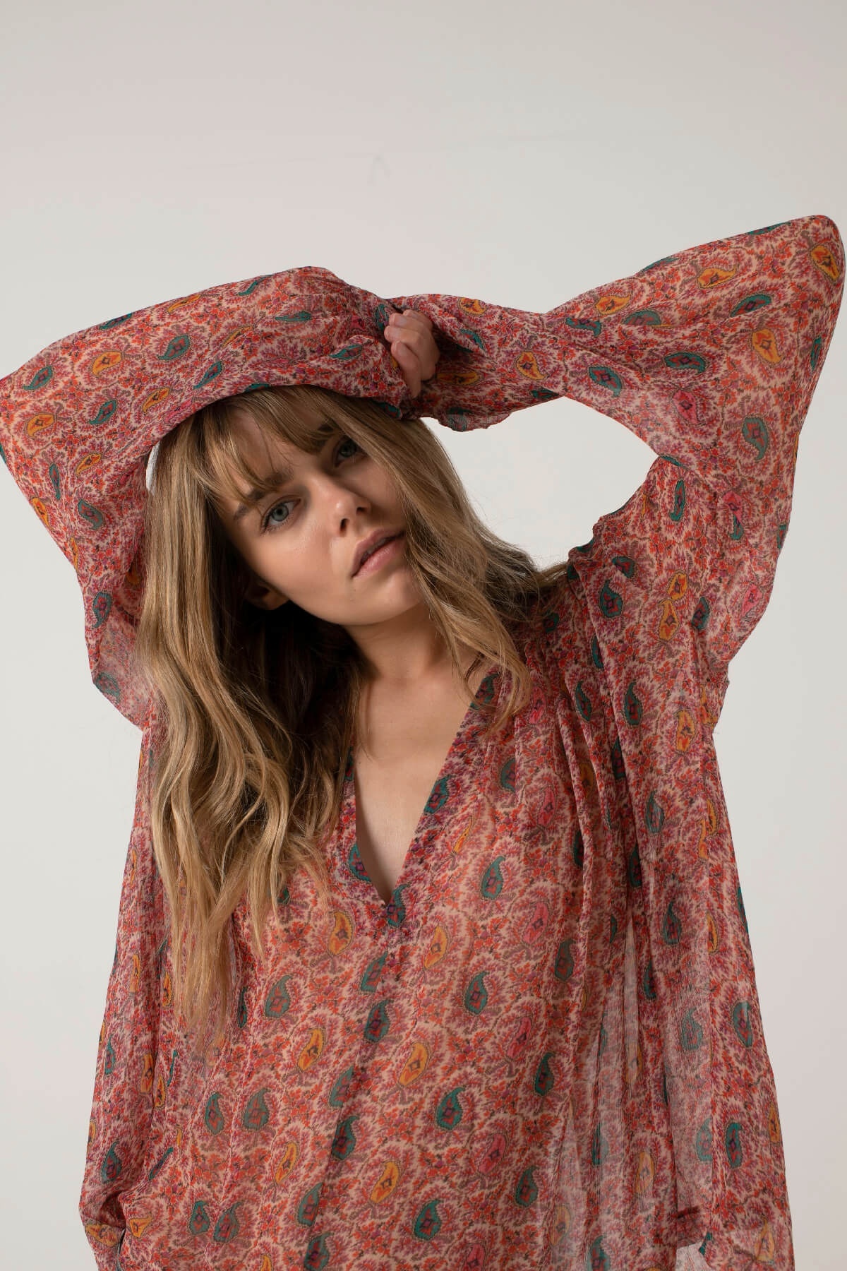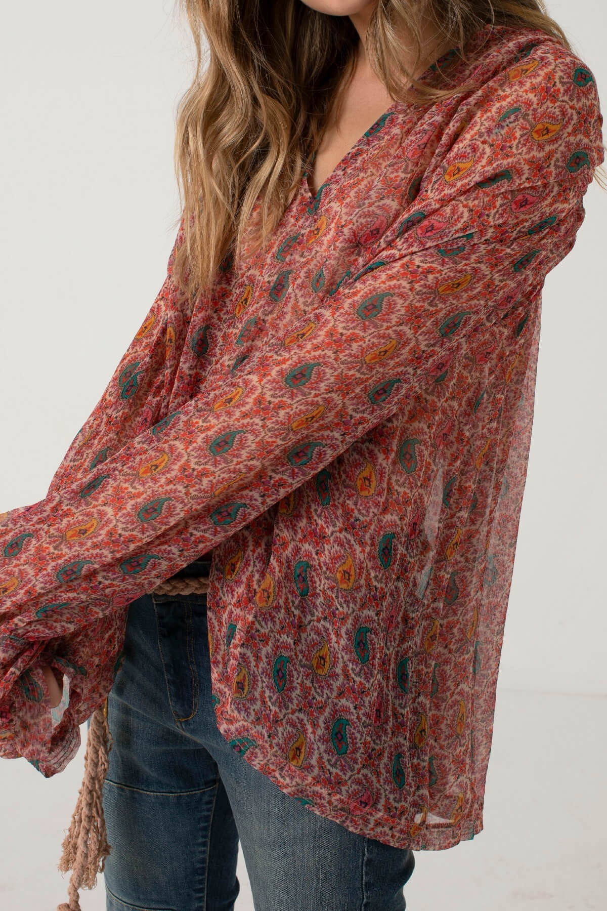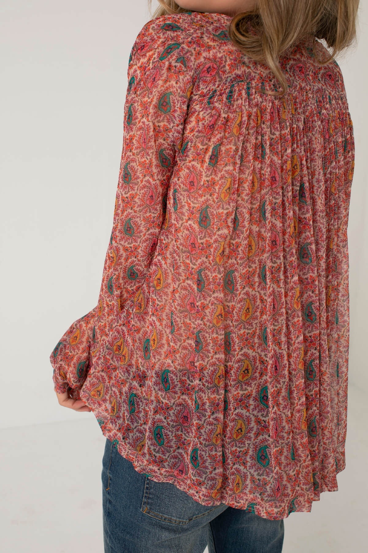 Fabriquée artisanalement en Inde, ils ont ici privilégié la viscose pour confectionner cette blouse.