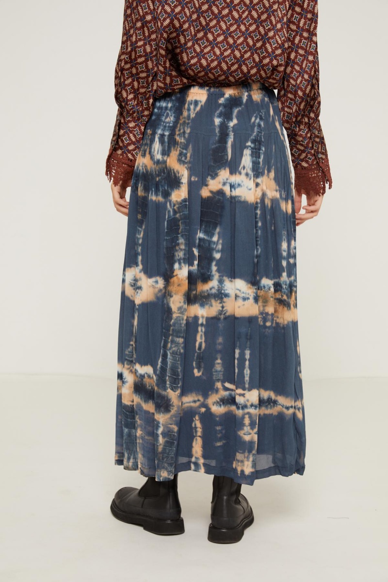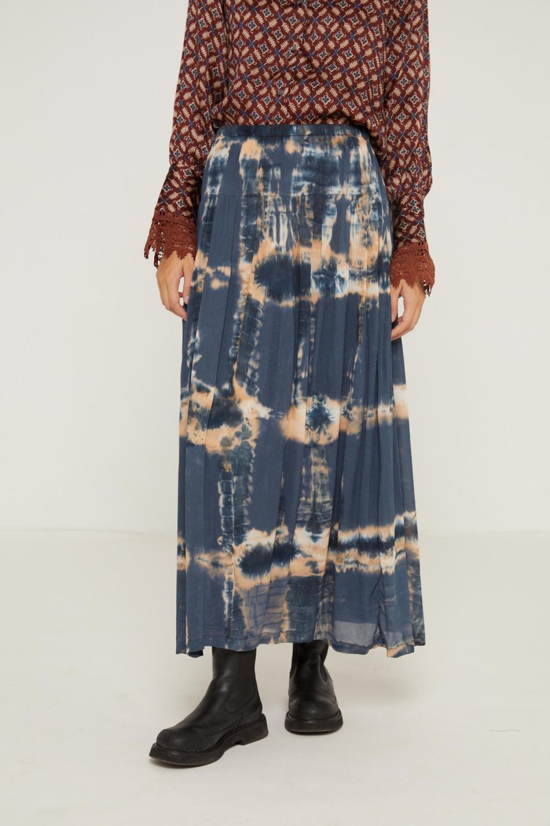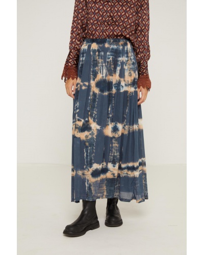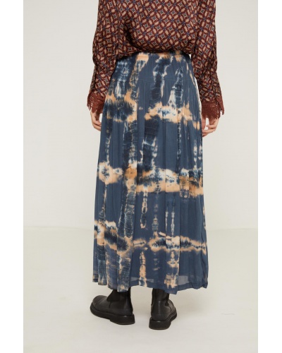 Fluide et évasée, la jupe longue bohème Morfia est ajustée par un élastique à la taille. Portez-la avec un pull en maille et des bottines noires montantes.
