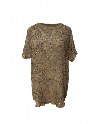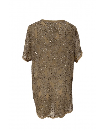 Ce modèle en viscose voile offre une légèreté et une transparence délicate. Entièrement brodé de sequins, il reflète la lumière avec chaque mouvement, apportant une dimension chic et festive à votre tenue.