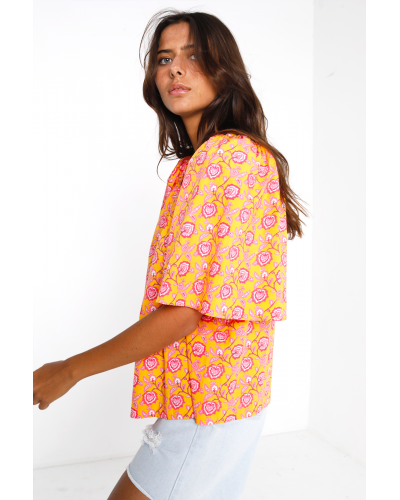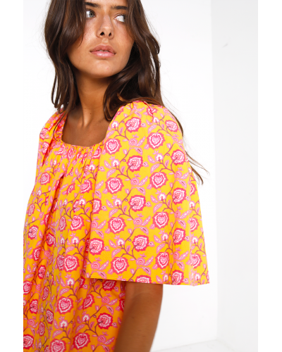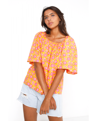 Le top Lucky est imprimé du motif vitaminé Gaucha. Il est réalisé en popeline de coton et présente une encolure élastiquée. Complétez l'ensemble avec le short Aldina assorti.
