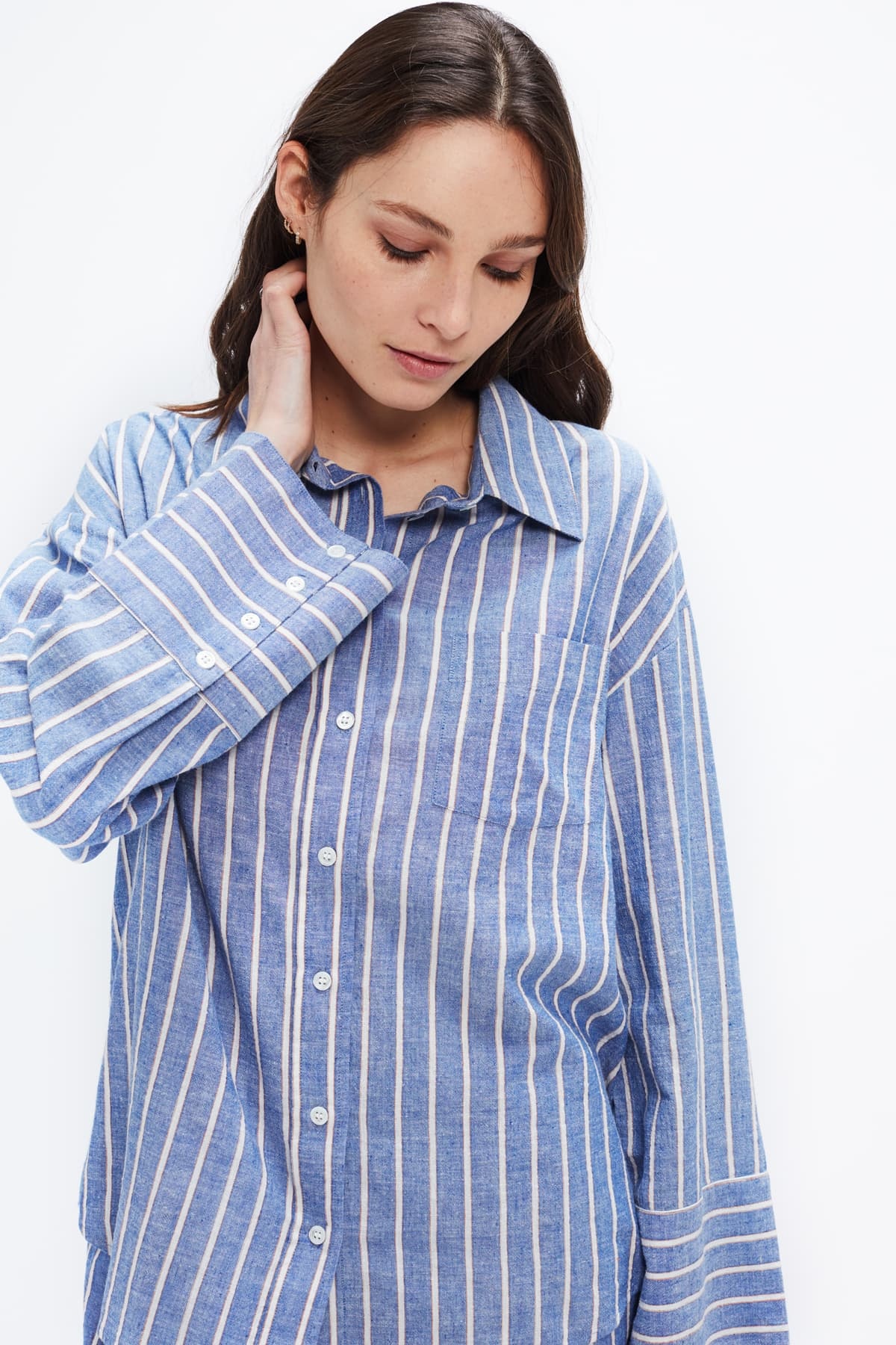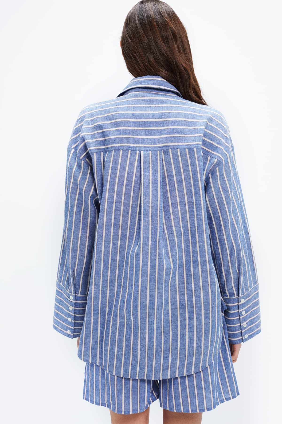 La chemise boyfriend Bimbo adopte une coupe décontractée accentuée par des emmanchures basses et de larges poignets boutonnés. Pour un total look optez pour le short MENO.