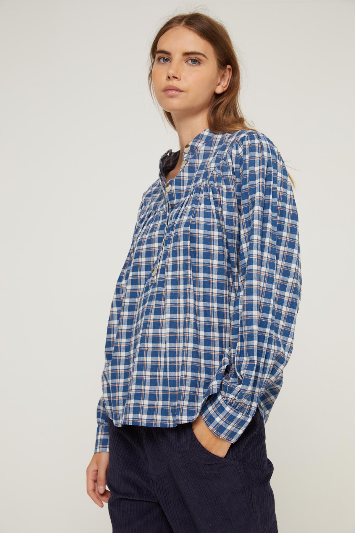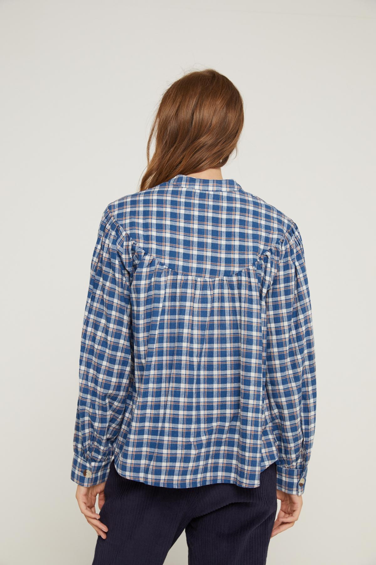 La blouse Noam est réalisé en coton et se distingue par sa coupe ample mise en valeur par des fronces au niveau du dos, des épaules et des poignets. Glissez le vôtre dans un jean. Associez-la avec votre jean favori.