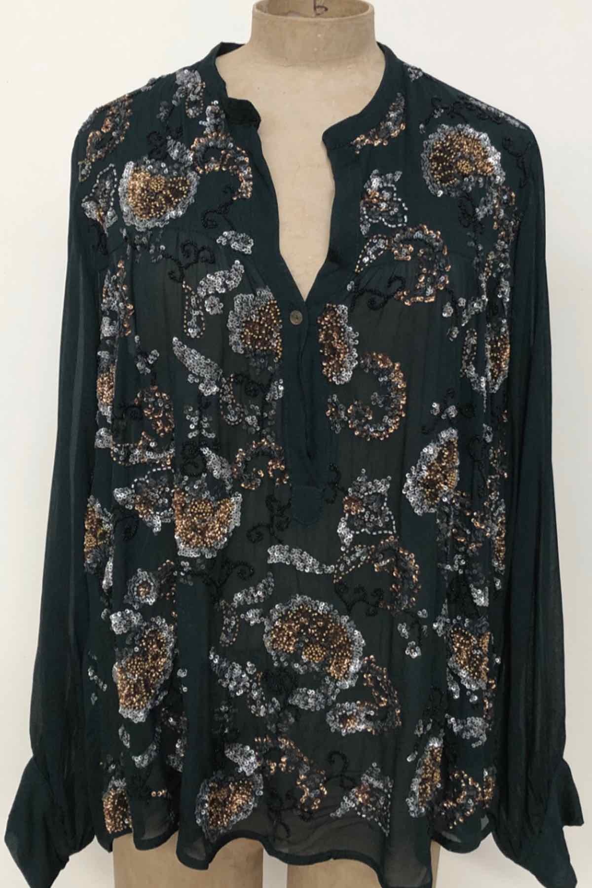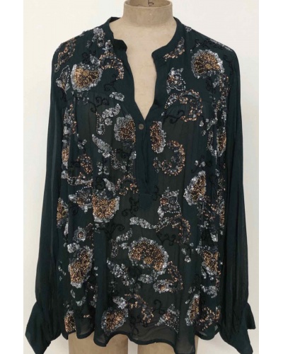 search Aperçu rapide Chariot Supprimer du panier Ajouter aux favoris Blouse NIKITA Prix 140,00 € Blouse en lurex dorée . Coupe droite . Encolure V . Manches longues . Base arrondie . Plus longue à l'arrière qu'à l'avant...