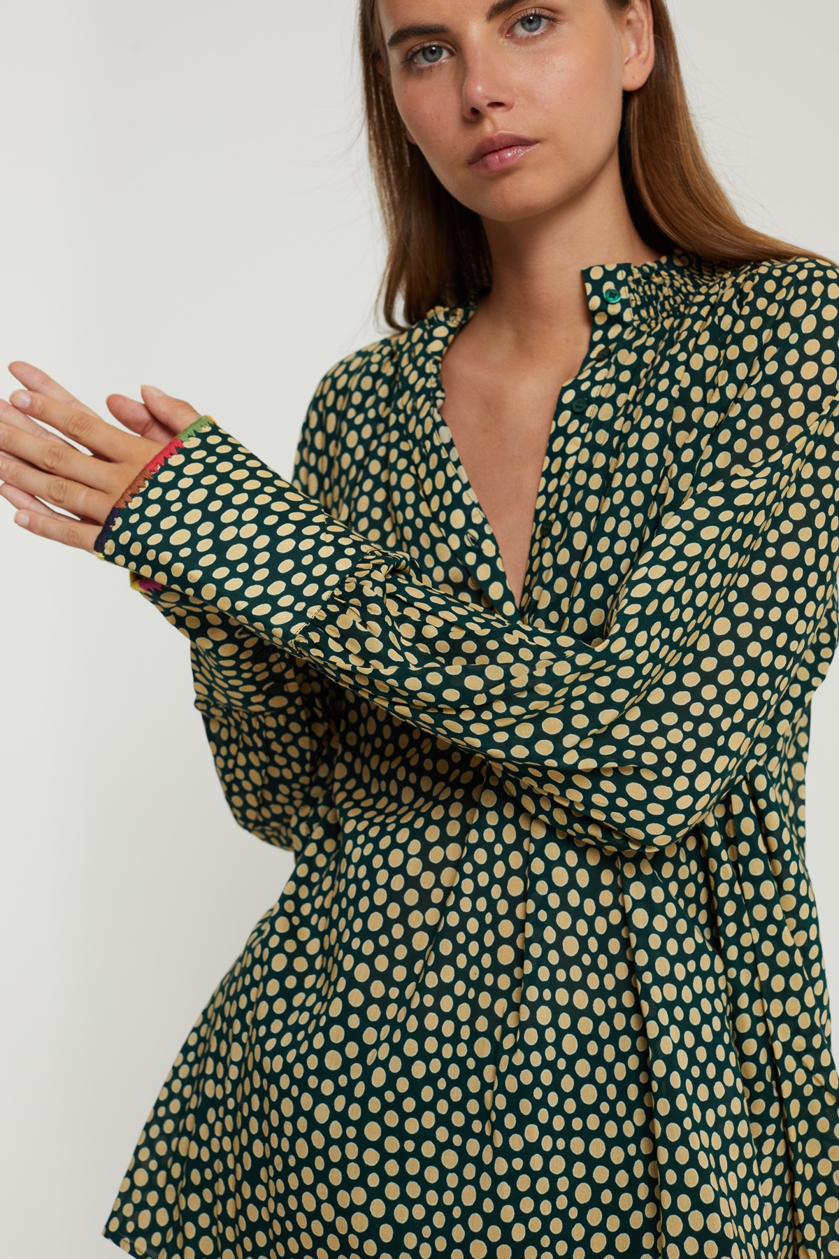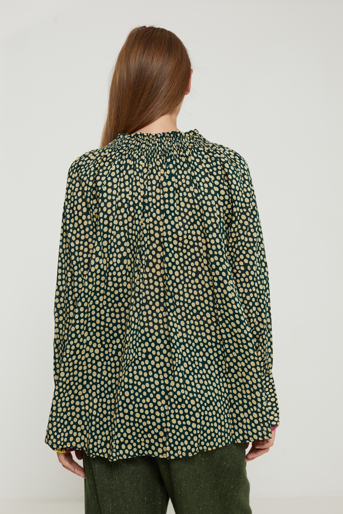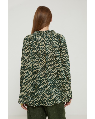 Laissez-vous charmer par la blouse Jaine, une pièce qui allie élégance et confort dans un équilibre parfait. Le coton léger caresse votre peau et vous enveloppe dans une sensation de légèreté. Le col smocké crée une silhouette unique, ajoutant une touche d'originalité à votre tenue. La blouse Jaine est idéale pour les occasions décontractées ou habillées, elle se marie aussi bien avec un pantalon de costume en laine qu'un pantalon en velours côtelé.