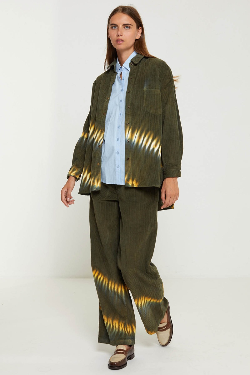 Laissez vous séduire par la surchemise en velours côtelé Ekanz qui allie style et confort. Dans une teinte verte kaki avec un tie&dye subtil qui évoque des rayons de lumière, cette surchemise est un véritable chef-d'œuvre de l'élégance décontractée. Polyvalente, cette dernière donne à vos looks un côté unique. Se porte à merveille par dessus une robe longue fluide ou avec un jean et un petit top blanc/écru. Associez la néanmoins avec des tons et couleurs neutres pour un style unique élégant.