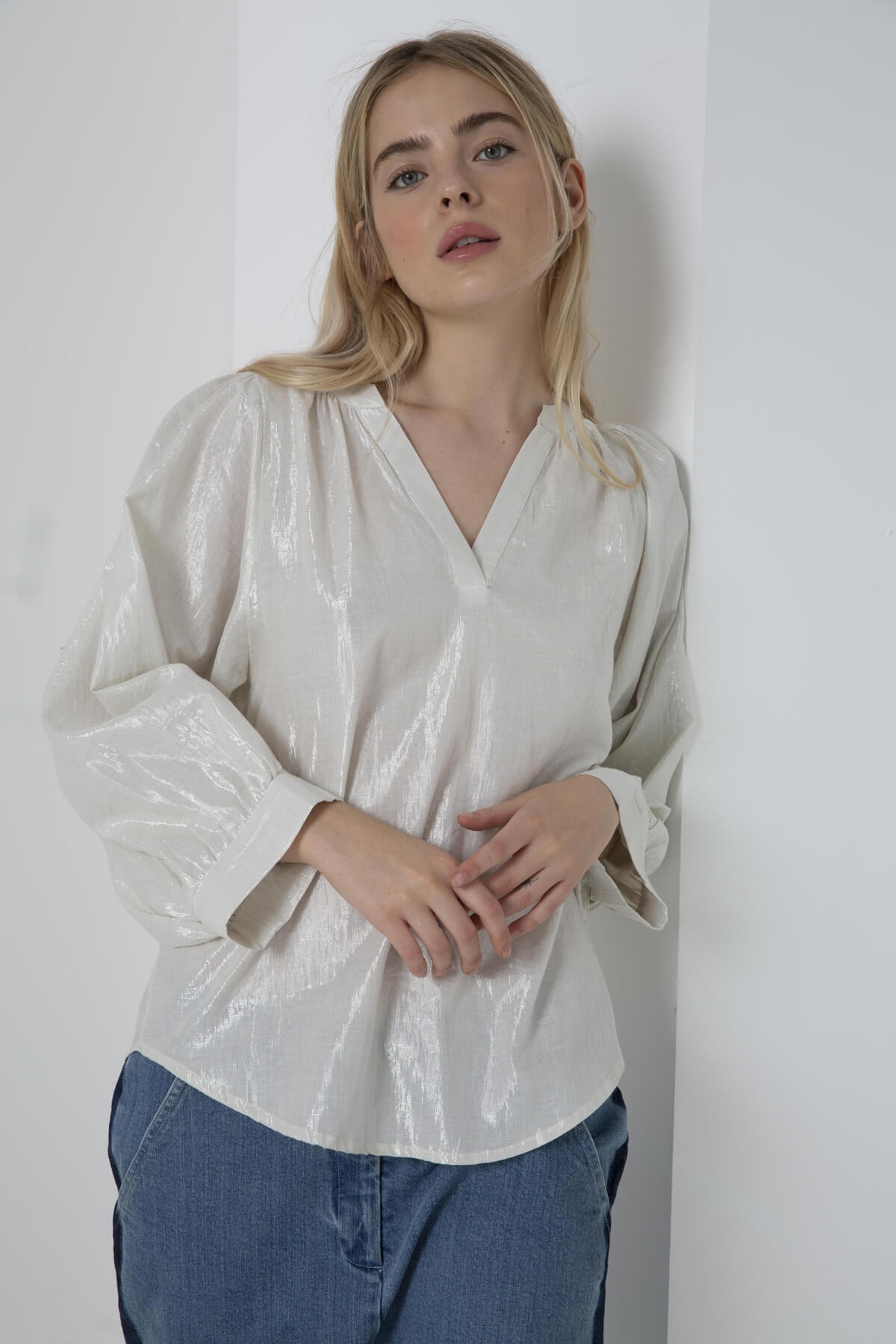 search Aperçu rapide Chariot Supprimer du panier Ajouter aux favoris Blouse NIKITA Prix 140,00 € Blouse en lurex dorée . Coupe droite . Encolure V . Manches longues . Base arrondie . Plus longue à l'arrière qu'à l'avant...
