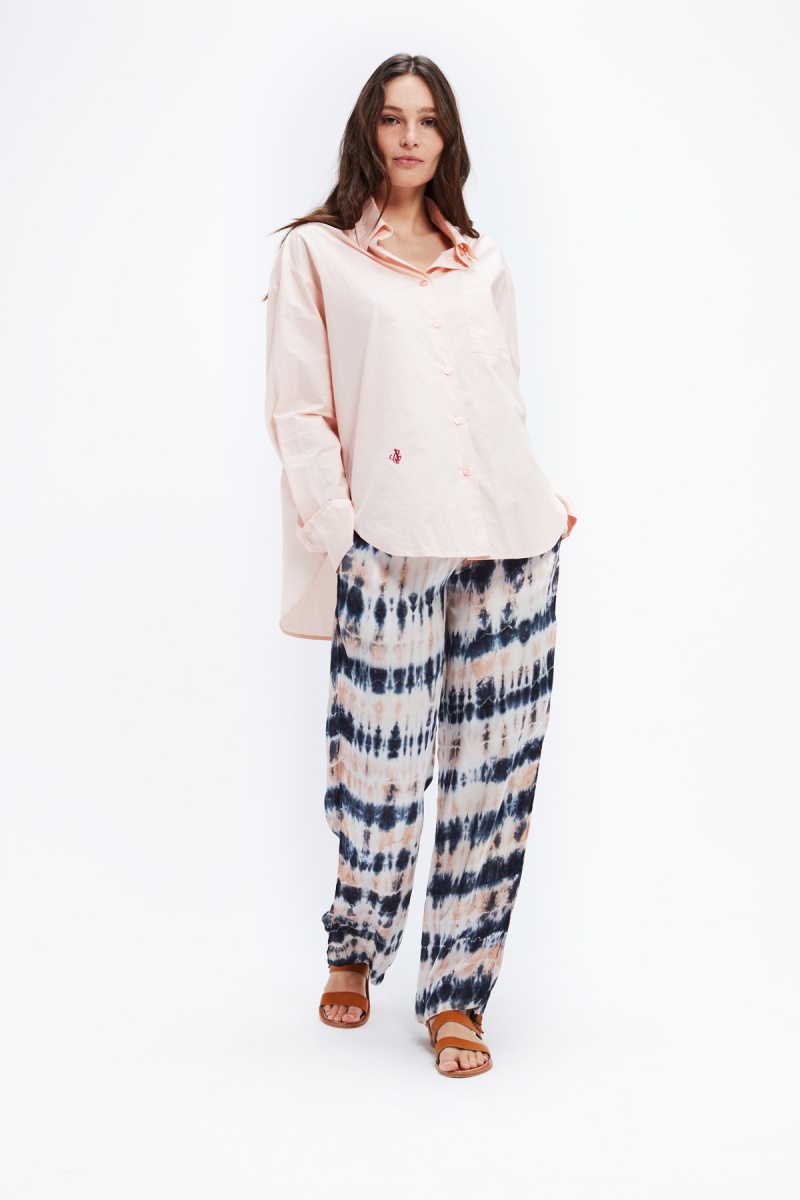 La chemise Pinki style boyfriend se noue à la taille ou se glisse dans votre short favori. Le petit détail en plus, la lettrine CJ brodée sur le côté.