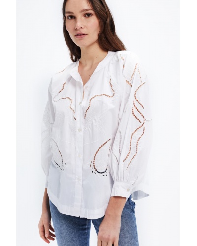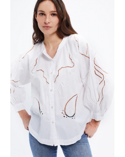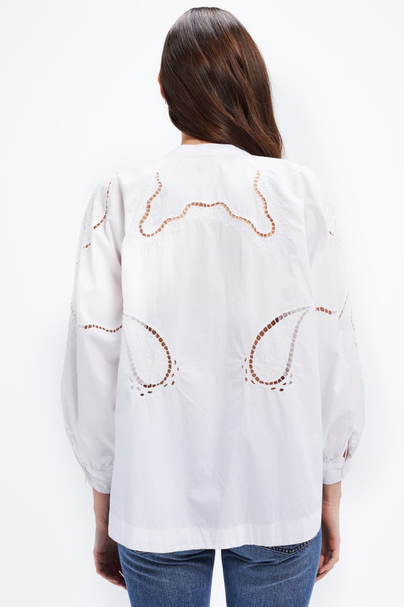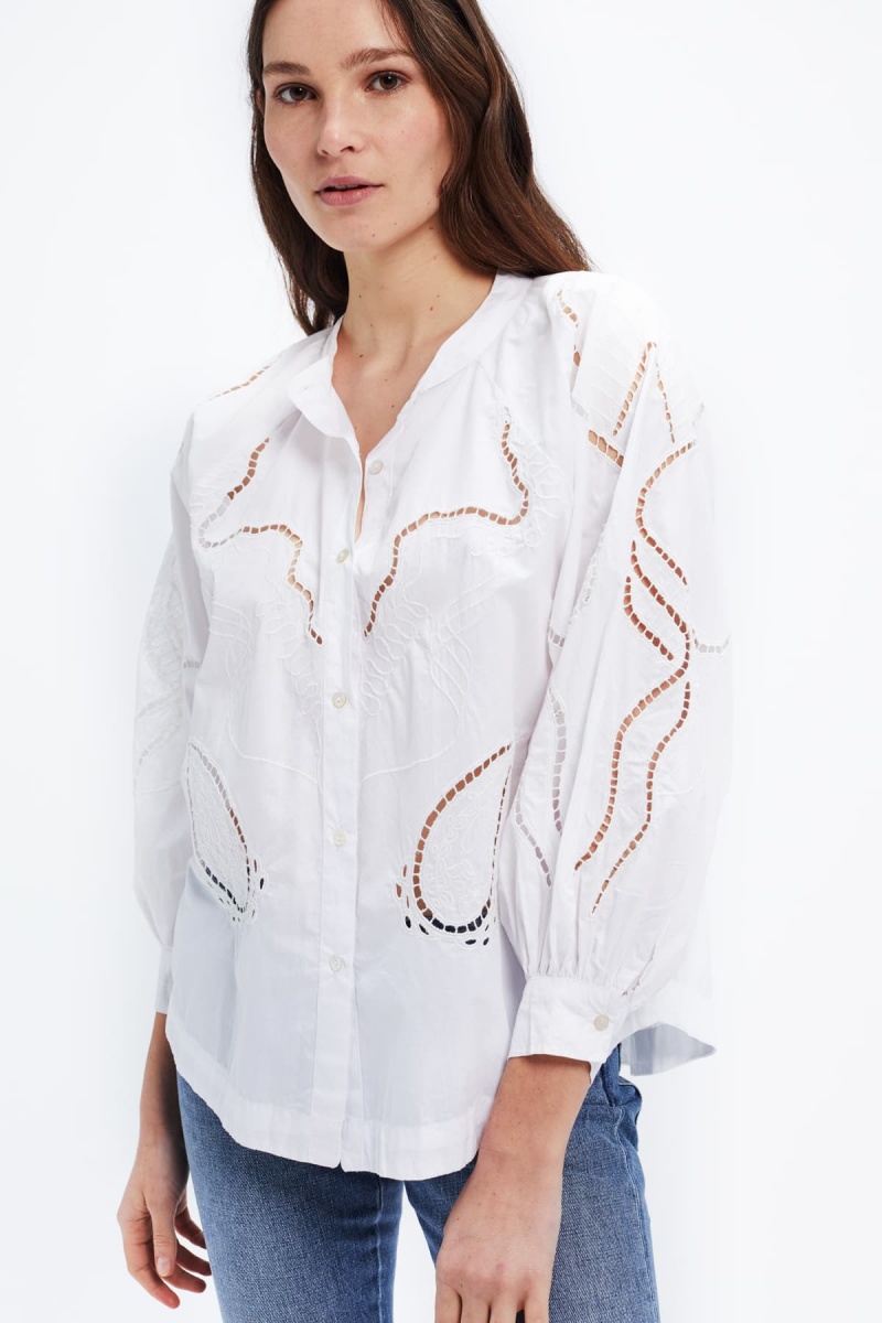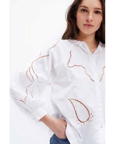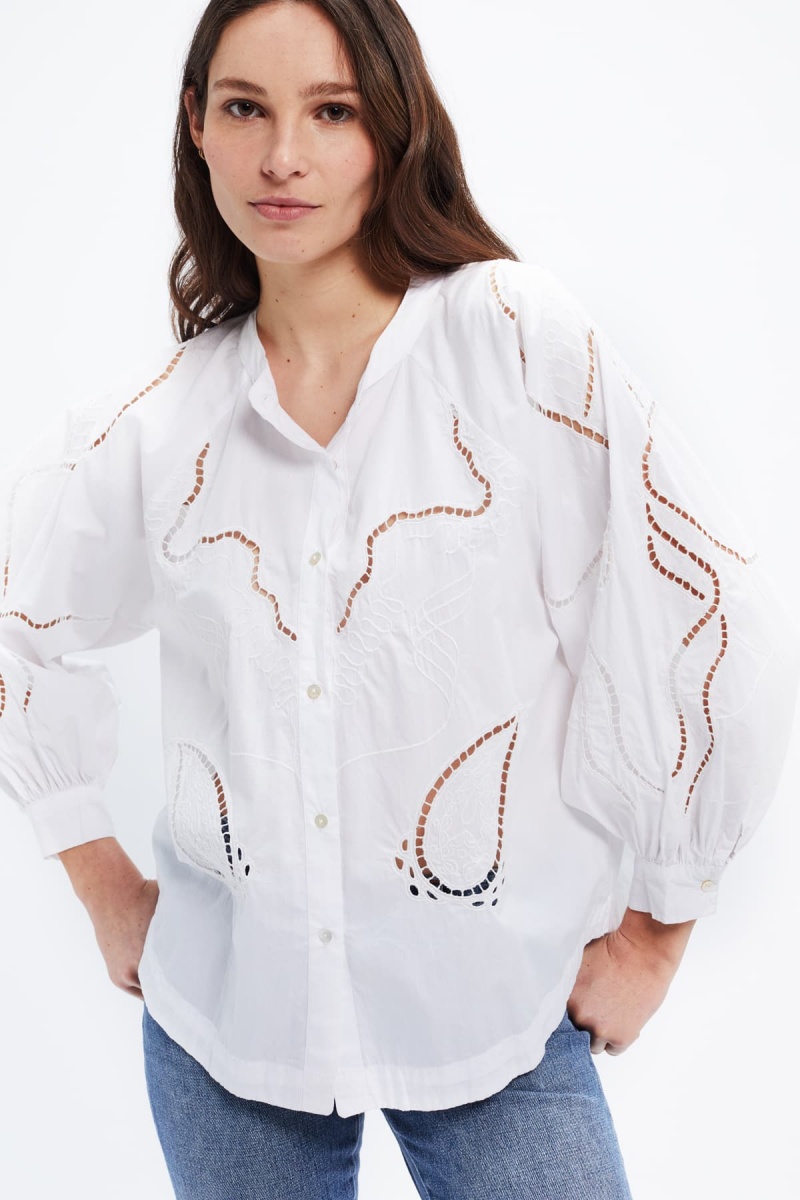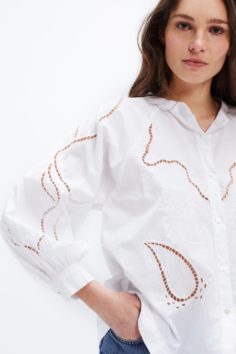 La chemise Fabia est faite en popeline de coton ajourée de motifs paisley aux inspirations bohèmes. Associez-la avec un pantalon imprimé et un chapeau en paille.