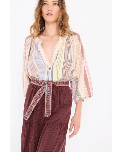 search Aperçu rapide Chariot Supprimer du panier Ajouter aux favoris Robe DANAE Prix 265,00 € Robe longue en lurex reflets métalliques . Coupe ample . Col en V à nouer . Manches longues . Poignets larges boutonnés . Taille froncée...